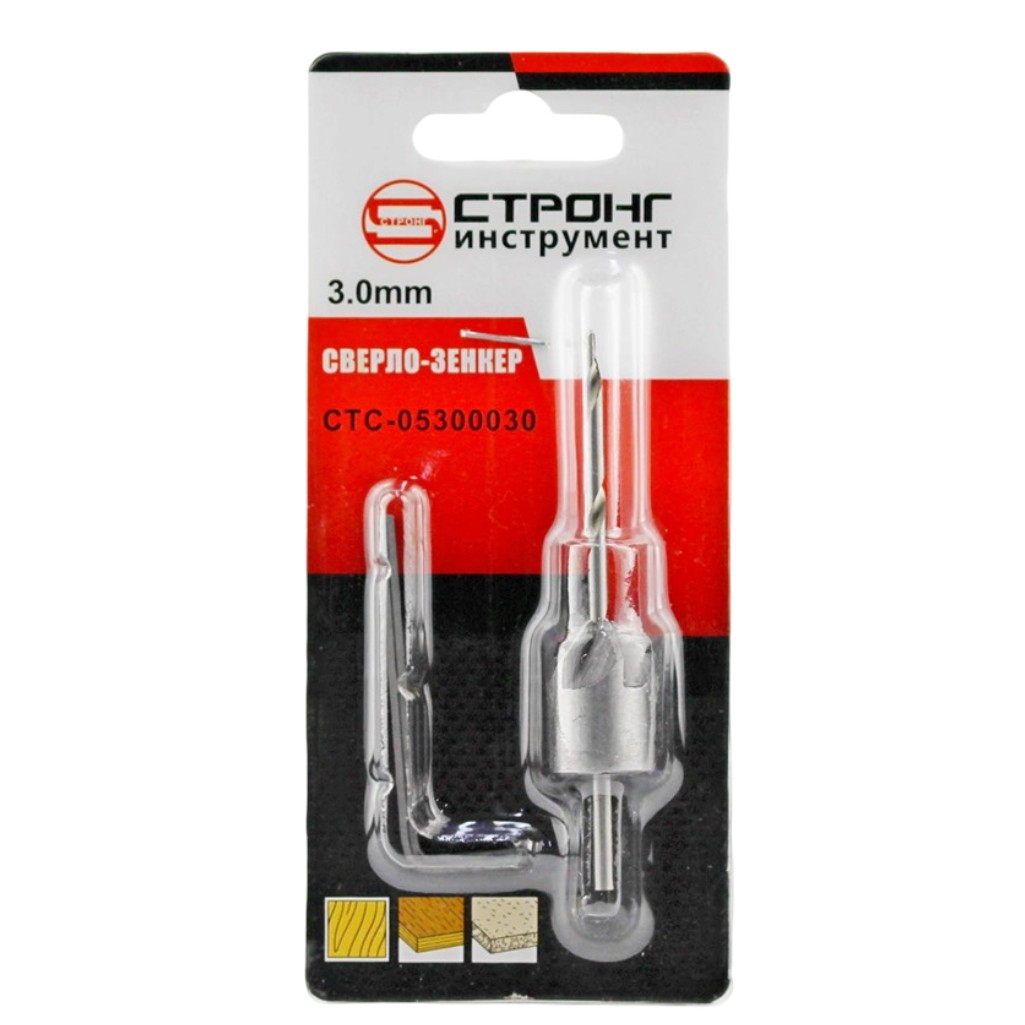 Описание сверла-зенкер по дереву СТРОНГ инструмент Strong СТС-05300030, диаметр 3 мм