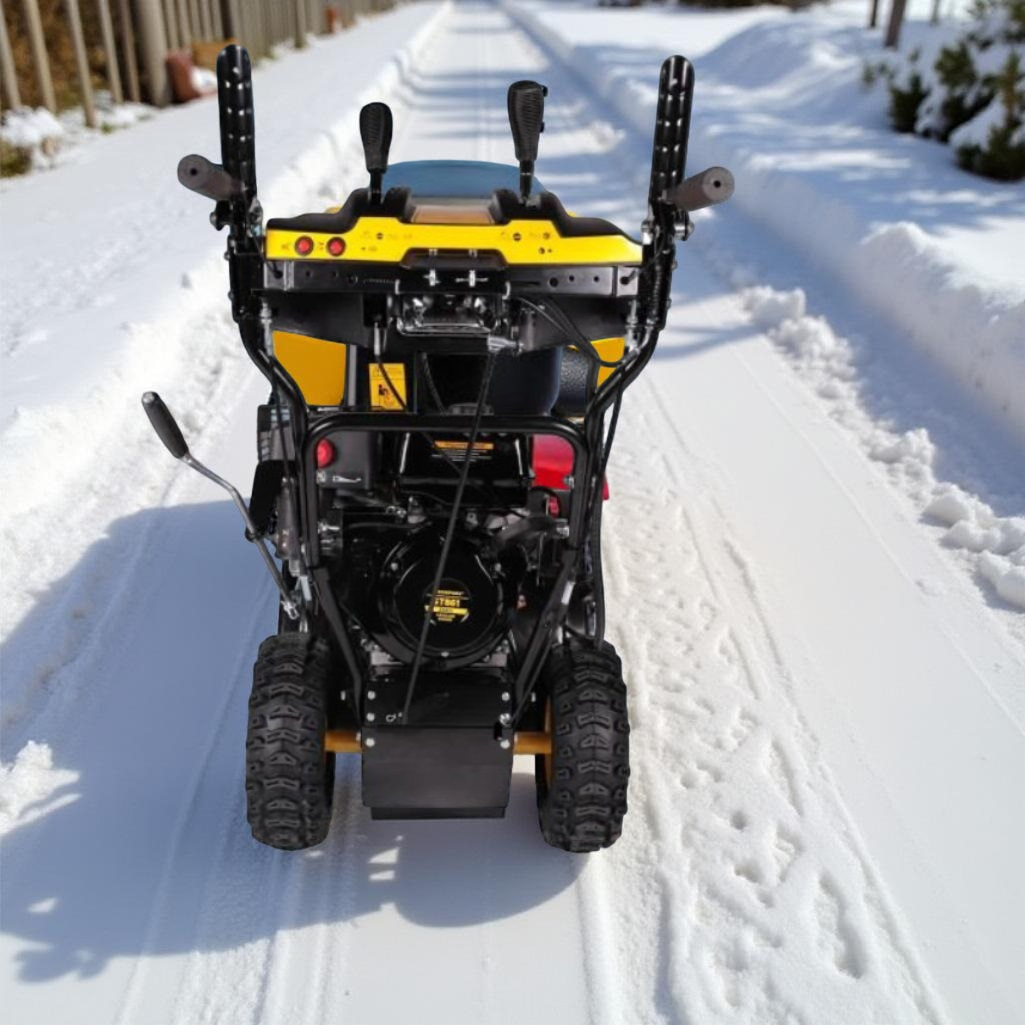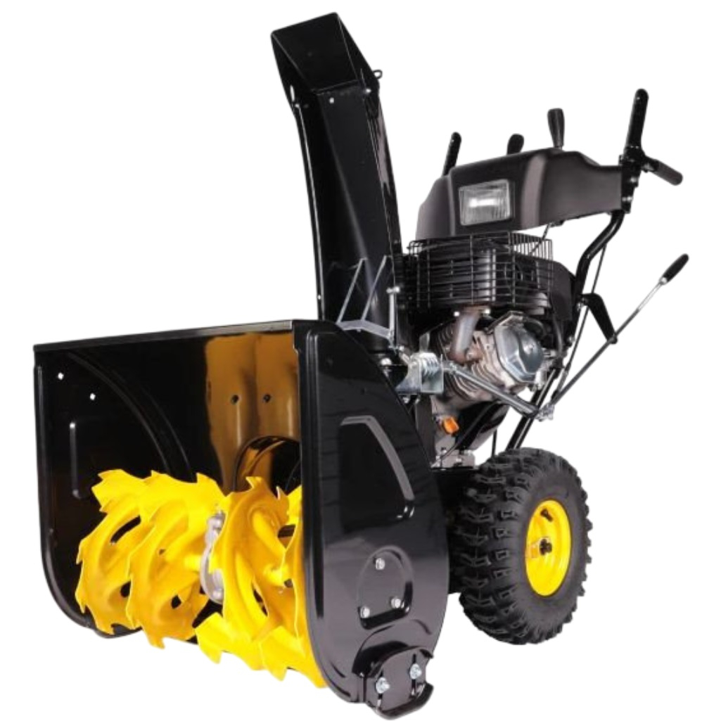 Снегоуборщик бензиновый Champion ST861E, двухступенчатый, металлический шнек, 7400 Вт предназначен для уборки территорий от снега и применяется исключительно на ровных поверхностях с твердым покрытием. Приводится в движение при помощи бензинового двигателя внутреннего сгорания. Подходит для сложных задач. Металлические шнеки перемалывают слежавшийся и обледенелый снег. 4-тактный двигатель Champion с верхним расположением клапанов обеспечивает высокую производительность. 6 скоростей вперед и 2 скорости назад позволяют оператору выбирать оптимальную скорость для работы в зависимости от глубины снега. Металлический желоб выброса гарантирует долговечность устройства. Металлический ковш и шнек эффективно справляются с любым типом снега. Разблокировка колес шплинтом улучшает маневренность снегоуборщика, позволяя легко маневрировать на узких участках. Направление выброса регулируется рукояткой, вынесенной к оператору, а угол поворота желоба составляет 190 градусов. Дальность выброса настраивается с помощью рукоятки на панели управления. Металлические полозья с регулировкой высоты защищают поверхность и позволяют работать на различных покрытиях, включая плитку и брусчатку. Двухсторонняя конструкция полозьев увеличивает их срок службы. Электрический стартер на 220 В обеспечивает легкий запуск двигателя при любых температурах. В случае теплого двигателя можно воспользоваться пусковой рукояткой для запуска. Фара позволяет работать в темное время суток. Пневмоколеса с агрессивным протектором обеспечивают отличное сцепление с поверхностью, легкость управления и простоту обслуживания.