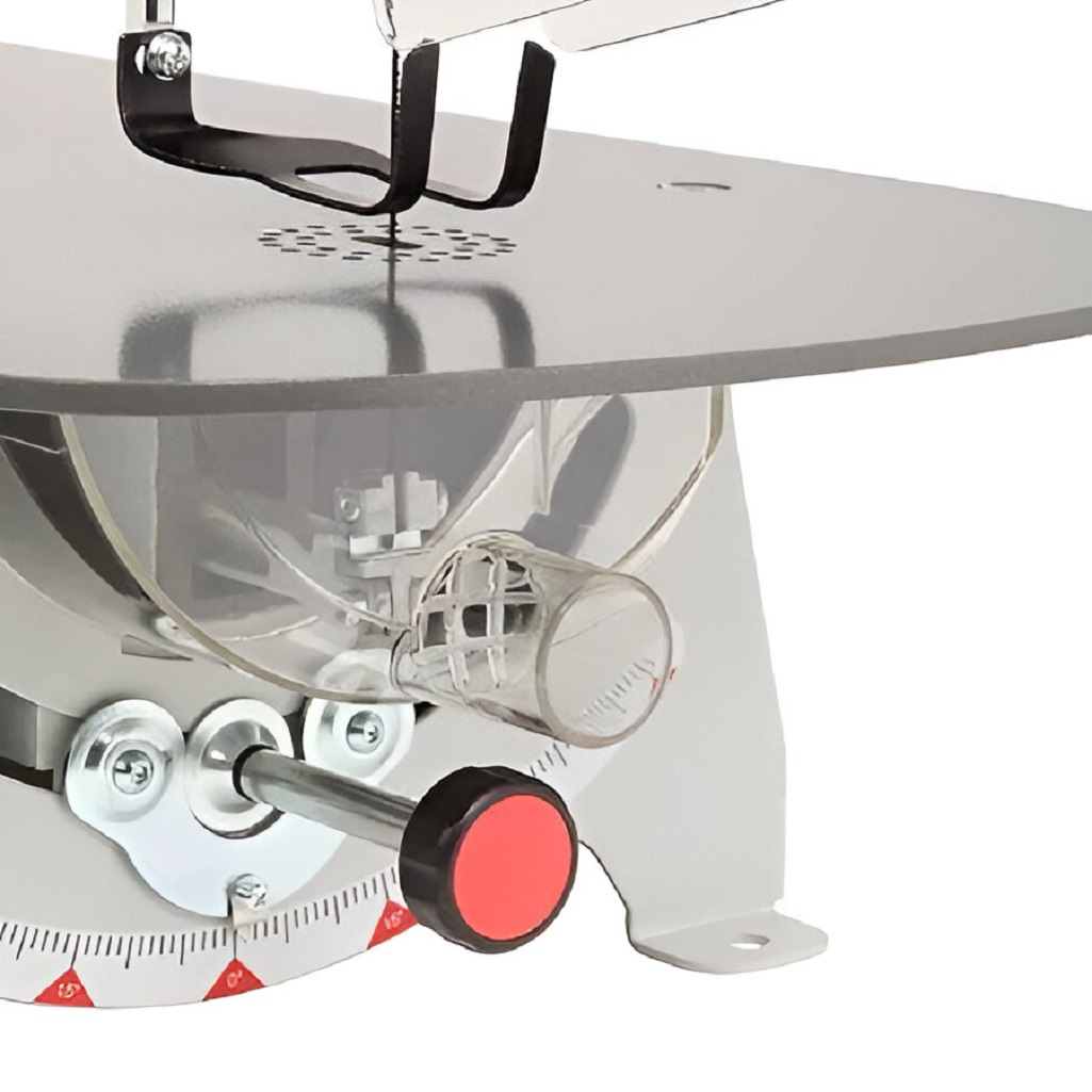 Станок лобзиковый Belmash SS-450VSP S283A для дерева, ДСП, фанеры, 120 Вт предназначен для выполнения различных операций, включая криволинейную резку, резку под углом, продольную и поперечную обработку материалов. Рабочий стол устройства может наклоняться на 45 градусов влево и вправо, что позволяет выполнять сложные задачи с высокой точностью. Станок оснащен системой удаления опилок и пыли, а также LED-подсветкой для обеспечения хорошей видимости рабочей зоны. Пылезащитный кожух с патрубком предотвращает загрязнение окружающей среды и повышает безопасность работы. Станок поддерживает использование как штифтовых, так и бесштифтовых пильных полотен, что делает его универсальным инструментом для различных видов работ. В основании устройства предусмотрены монтажные отверстия для крепления к верстаку, что обеспечивает его надежную фиксацию. Двигатель станка коллекторный, а передача осуществляется через кривошипно-шатунный механизм.