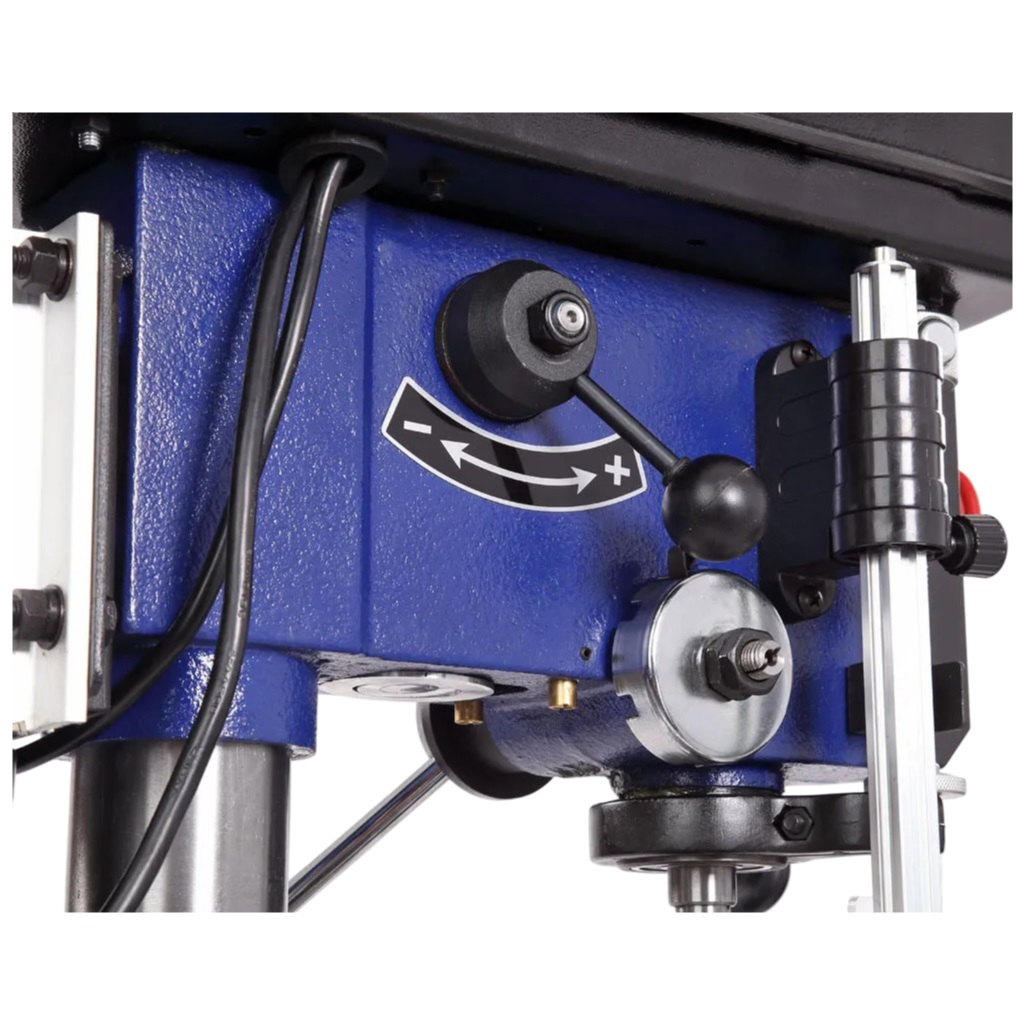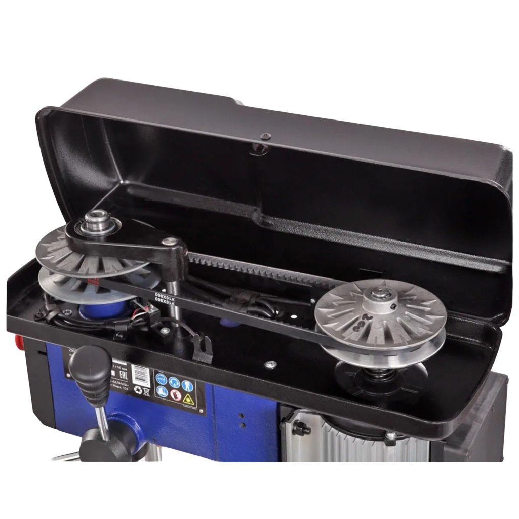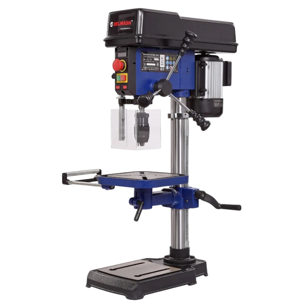 Станок токарно-сверлильный Belmash DPWL-300/400-16VS S282A для дерева, 550 Вт предназначен для обработки различных материалов с помощью вращающихся режущих или шлифующих инструментов. Он позволяет создавать сквозные и глухие отверстия, а также выполнять растачивание и зенкование. Стол, опора и корпус сверлильной головки изготовлены из чугуна. Станок оснащён индикатором скорости вращения шпинделя, подсветкой рабочего стола, кнопкой аварийной остановки, возможностью удлинения рабочего стола и лазерным указателем. Благодаря вариатору, станок имеет широкий диапазон скорости вращения шпинделя от 340 до 2200 оборотов в минуту. Это позволяет выполнять различные операции с разными материалами. Регулировка скорости осуществляется путём перемещения рукоятки, расположенной на левой стороне сверлильной головки.