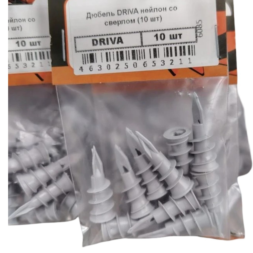 Дюбель для гипсокартона Жесть Driva УТ-00006085 нейлон со сверлом, 14х32 мм, упаковка 10 штук