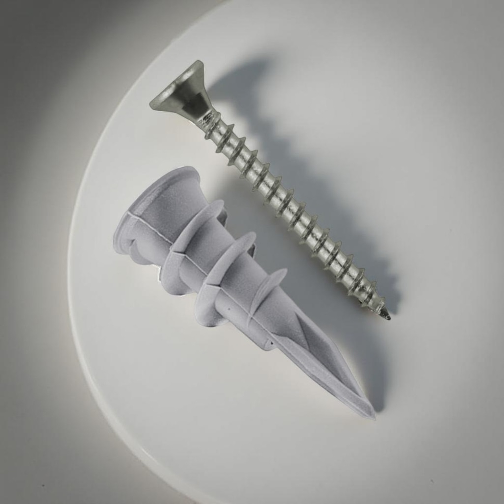 Дюбель для гипсокартона Driva Жесть УТ-00006120 полипропилен с шурупом 14х23 мм, упаковка 10 штук предназначен для фиксации легких предметов на гипсокартоне. Благодаря особой резьбе, которая одновременно не повреждает материал и увеличивает площадь контакта, дюбель обеспечивает надежное крепление. Острый наконечник позволяет обойтись без предварительного сверления. Установка производится с помощью крестообразной отвертки. Для крепления более массивных элементов и работы с ДСП рекомендуется использовать металлические аналоги. Используется для монтажа легких деталей, таких как картины, светильники, плинтусы, выключатели, кабельные каналы и рейки на гипсокартон. Также применяется для соединения нескольких листов гипсокартона между собой, что повышает прочность конструкции. Материал дюбеля отличается устойчивостью к влаге и температурным колебаниям. При правильном использовании он не подвержен деформации и растяжению со временем. Максимальная нагрузка на дюбель составляет 25 кг.