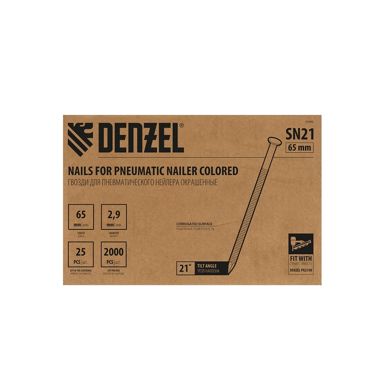 Гвозди Denzel SN21 65мм 2000шт крашенные 57695