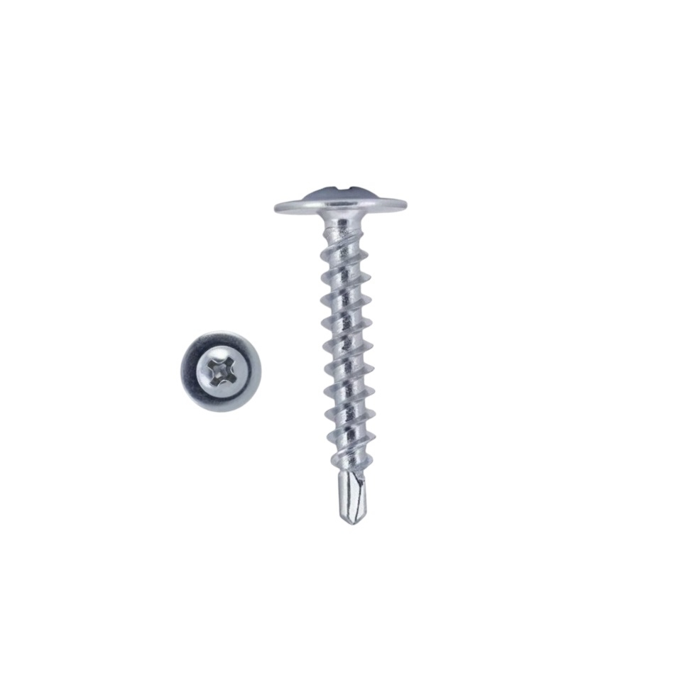 Саморез с прессшайбой Жесть УТ-00001703 острый 4.2х19 мм, оцинкованная сталь, упаковка 200 шт, контейнер 0.5 л предназначен для монтажа металлических конструкций, таких как каркасы зданий, перегородки, фасады, водостоки, вентиляционные системы и кровельные материалы. Он также используется для фиксации наружной и внутренней отделки, включая гипсокартон. Саморез выполнен из оцинкованной стали. Саморез с прессшайбой Жесть используется для соединения металлических листов, кровельных материалов, поликарбоната и пластиковых элементов между собой или с другими поверхностями. Инструмент подходит для крепления металлических профилей, труб и прочих деталей. Заострённый наконечник самореза позволяет легко пробивать металл толщиной до 1 мм без предварительного сверления. Головка самореза имеет полукруглую форму с прессшайбой и крестообразным шлицем Phillips с частой резьбой. Наконечник самореза острый, что обеспечивает надёжное прижатие листов и предотвращает самопроизвольное раскручивание крепежа.