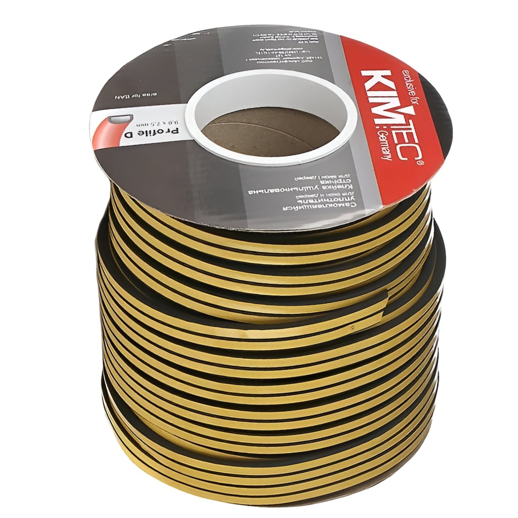 Уплотнитель самоклеющийся Kim Tec промышленный, D-профиль, черный, 7.5х9 мм