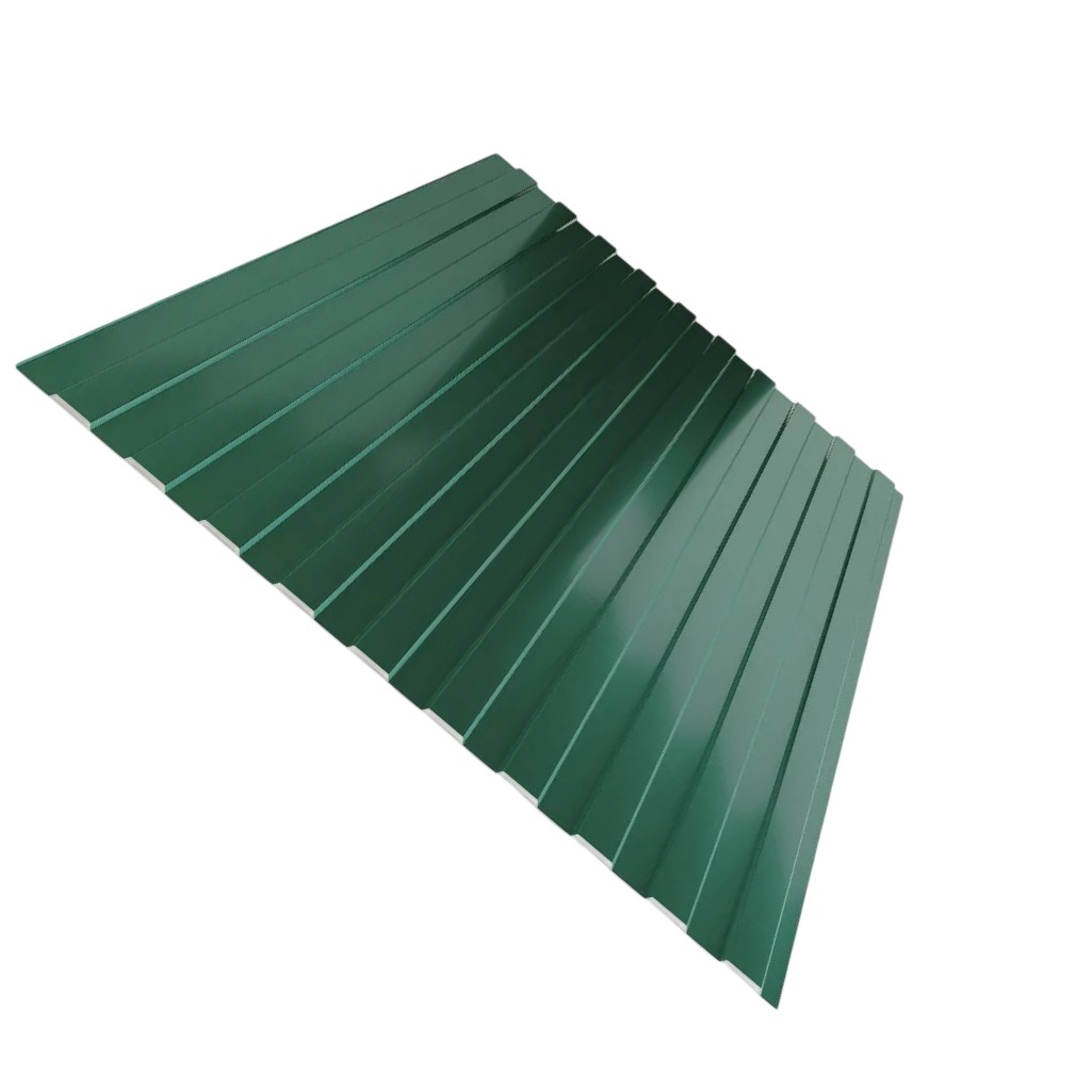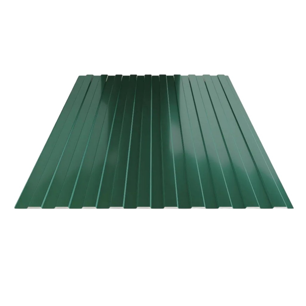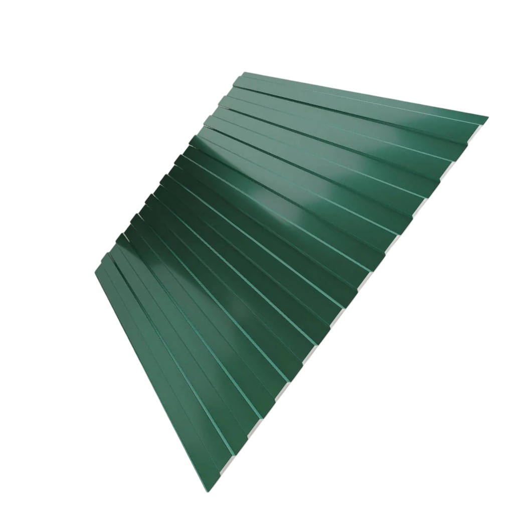 Профнастил Металл Профиль С-8 темно-зеленый 0.4х1200х1700 мм для кровли, фасада, забора - это высококачественный строительный материал, изготовленный из оцинкованной стали с полимерным покрытием. Этот профилированный лист обладает трапециевидной формой и высотой профиля 8 мм, что обеспечивает ему прочность и долговечность в эксплуатации.