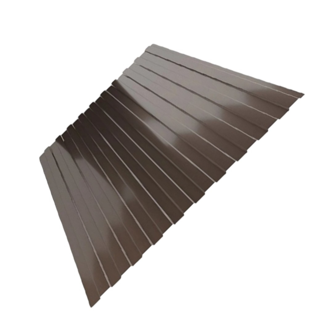 Профнастил Металл Профиль С-8 коричневый 0.4х1200х2000 мм для кровли, фасада, забора - это высококачественный строительный материал, предназначенный для различных видов строительных работ. Изготовленный из стальных оцинкованных листов с полимерным цветным покрытием, он сочетает в себе надежность и эстетичность.