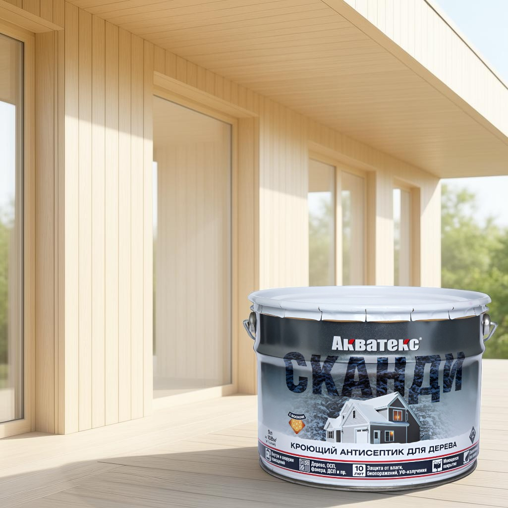 Описание антисептика Акватекс Сканди кроющего по дереву слоновая кость 9 л