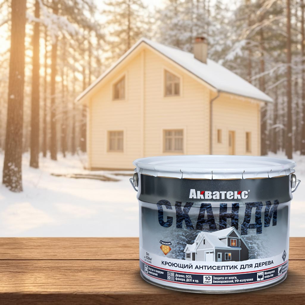 Антисептик Акватекс Сканди для дерева, кроющий, полуматовое покрытие, Топленое молоко, 9 л