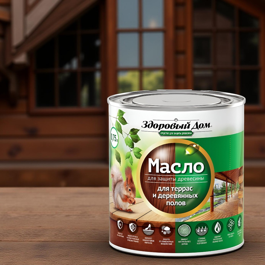 Масло Здоровый Дом для террас и деревянных полов, средство для защиты древесины, Тик, 0.75 л