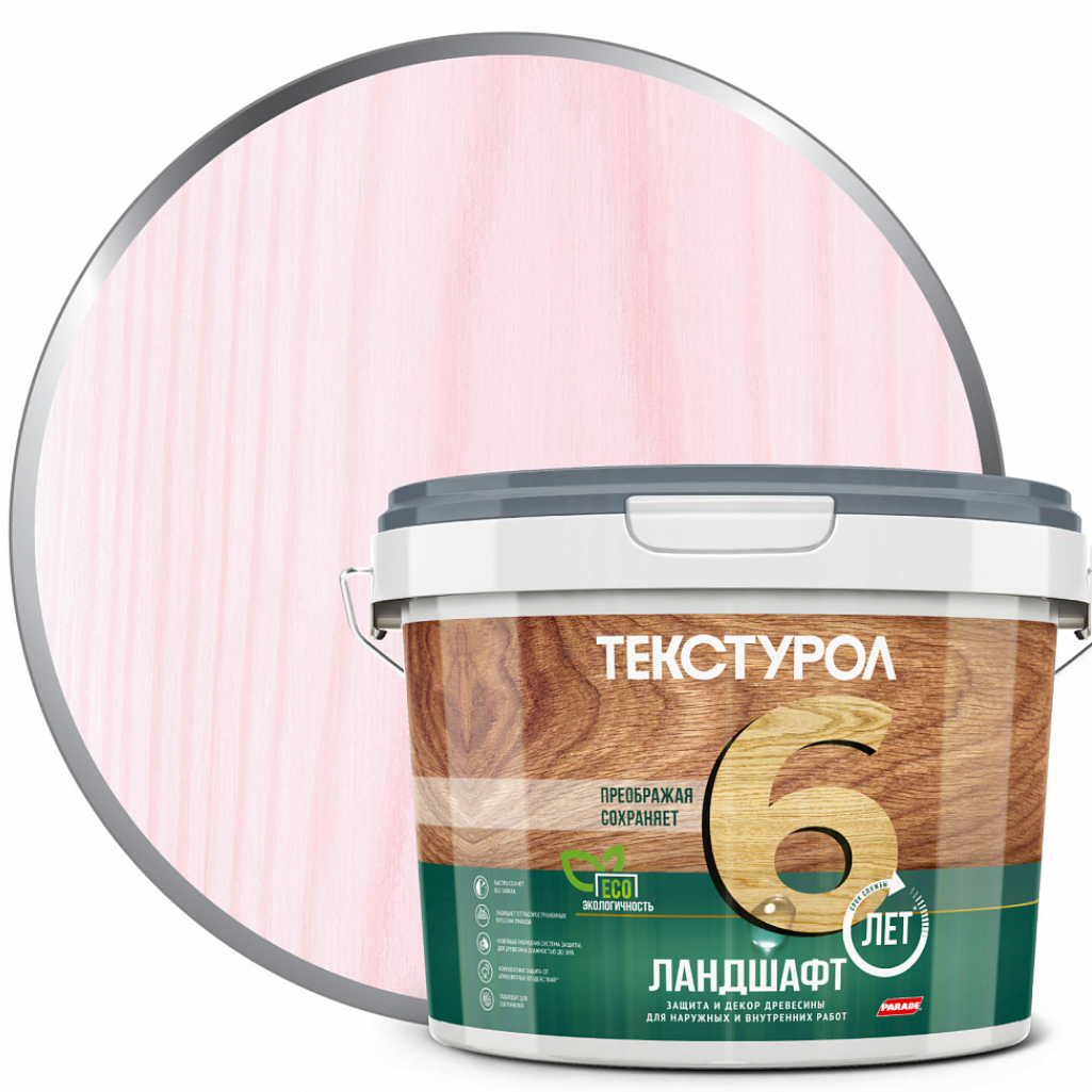 Пропитка Текстурол Ландшафт, защита и декор древесины, с воском, Чайная роза, 2.5 л - это средство защиты, созданное на водной основе. Оно сочетает в себе декоративные и защитные свойства, обладает высокой укрывистостью и подходит как для внутренних, так и для наружных работ. Предназначено для отделки деревянных изделий и конструкций, включая обшивочные доски, стеновые панели, фасады, заборы, плинтусы, древесно-волокнистые и древесно-стружечные плиты, фанеру и шпон. Рекомендуется для использования в деревянных домах, садовых постройках и заборах. Создает шелковисто-матовое покрытие, которое подчеркивает текстуру древесины, при этом обладает высокой укрывистостью. Благодаря тиксотропности, состав легко и экономично наносится, без подтеков и разбрызгивания. Можно применять на древесине с влажностью до 30%.