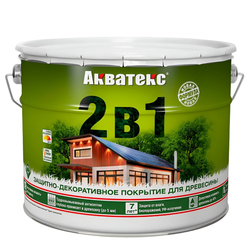 - Защитно-декоративное покрытие для дерева Акватекс 2 в 1 полуматовое Тик 9л