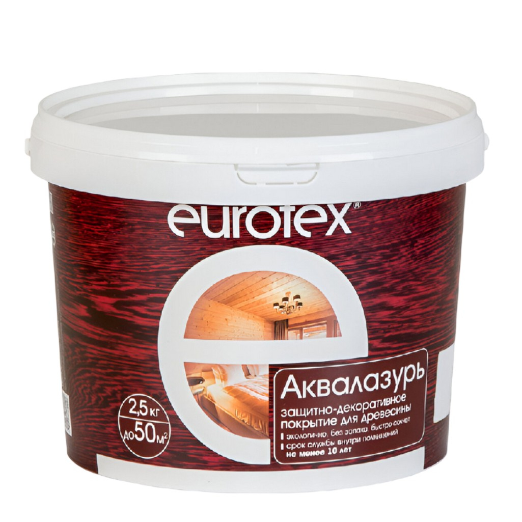 Защитно-декоративное покрытие Eurotex Аквалазурь для древесины, полуглянцевый блеск, Калужница, 2.5 кг в Москве