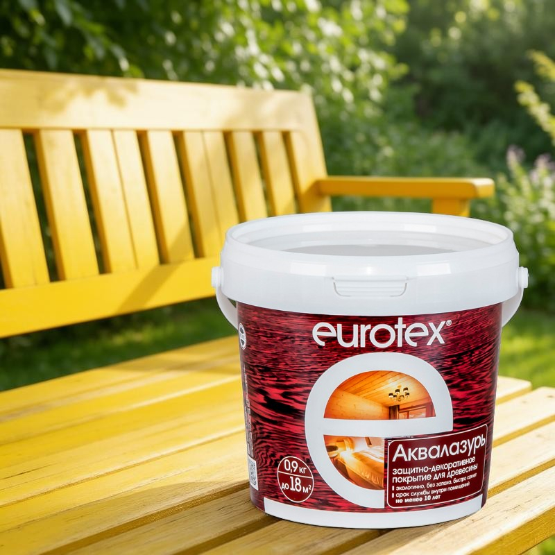 Защитно-декоративное покрытие для древесины Eurotex Аквалазурь, полуглянцевый блеск, Сосна, 0.9 кг