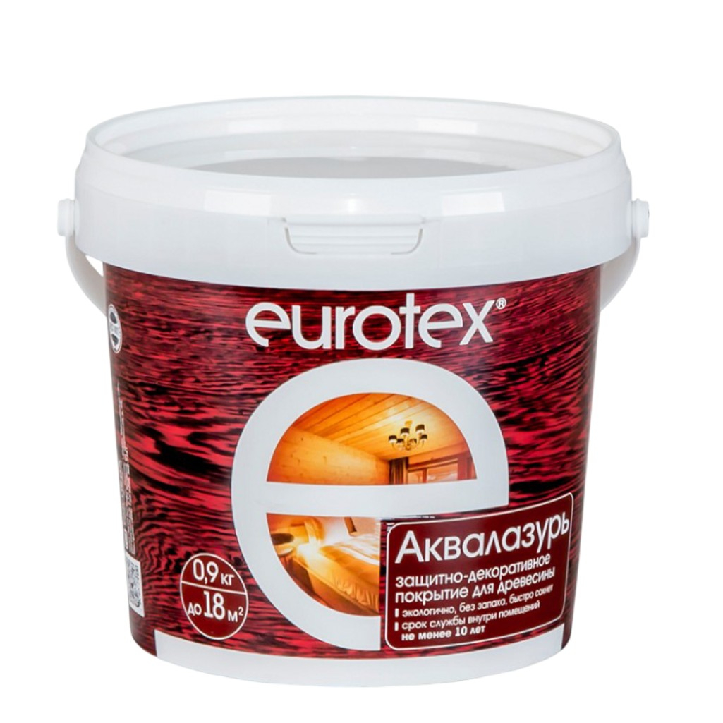 Защитно-декоративное покрытие для древесины Eurotex Аквалазурь, полуглянцевый блеск, Сосна, 0.9 кг в Москве