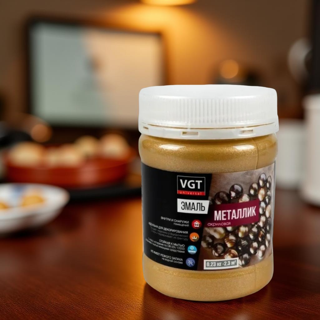 - Эмаль VGT ВД-АК-1179 универсальная, металлик, золото 0,23кг