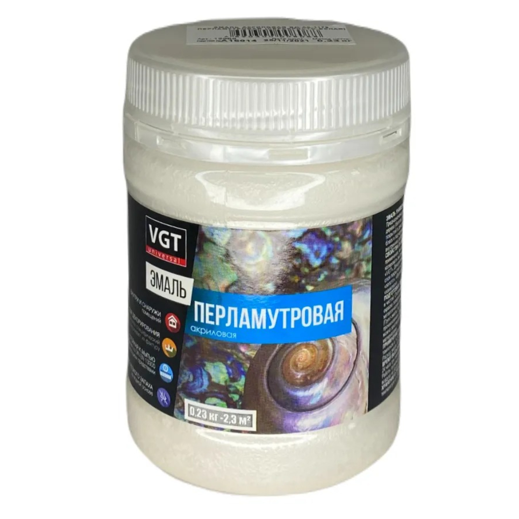 Технические характеристики эмали VGT ВД-АК-1179 Перламутровая, для декоративных работ, серебристо-белая, 0.23 кг