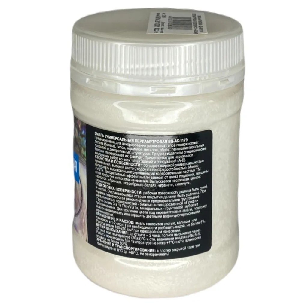 Описание эмали VGT ВД-АК-1179 Перламутровая, для декоративных работ, серебристо-белая, 0.23 кг