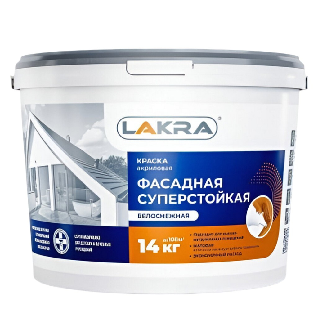 Краска акриловая Лакра 8306490 фасадная, суперстойкая, белоснежная, матовая, 14 кг в Москве