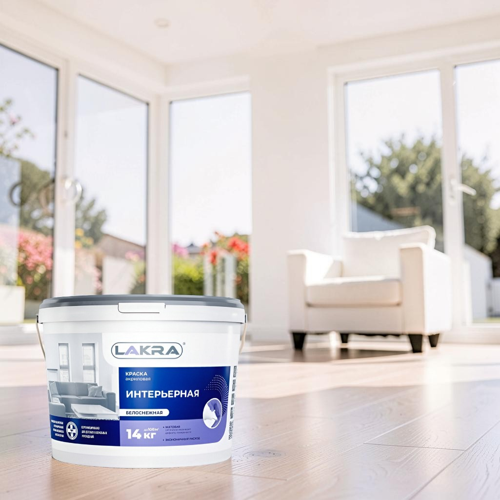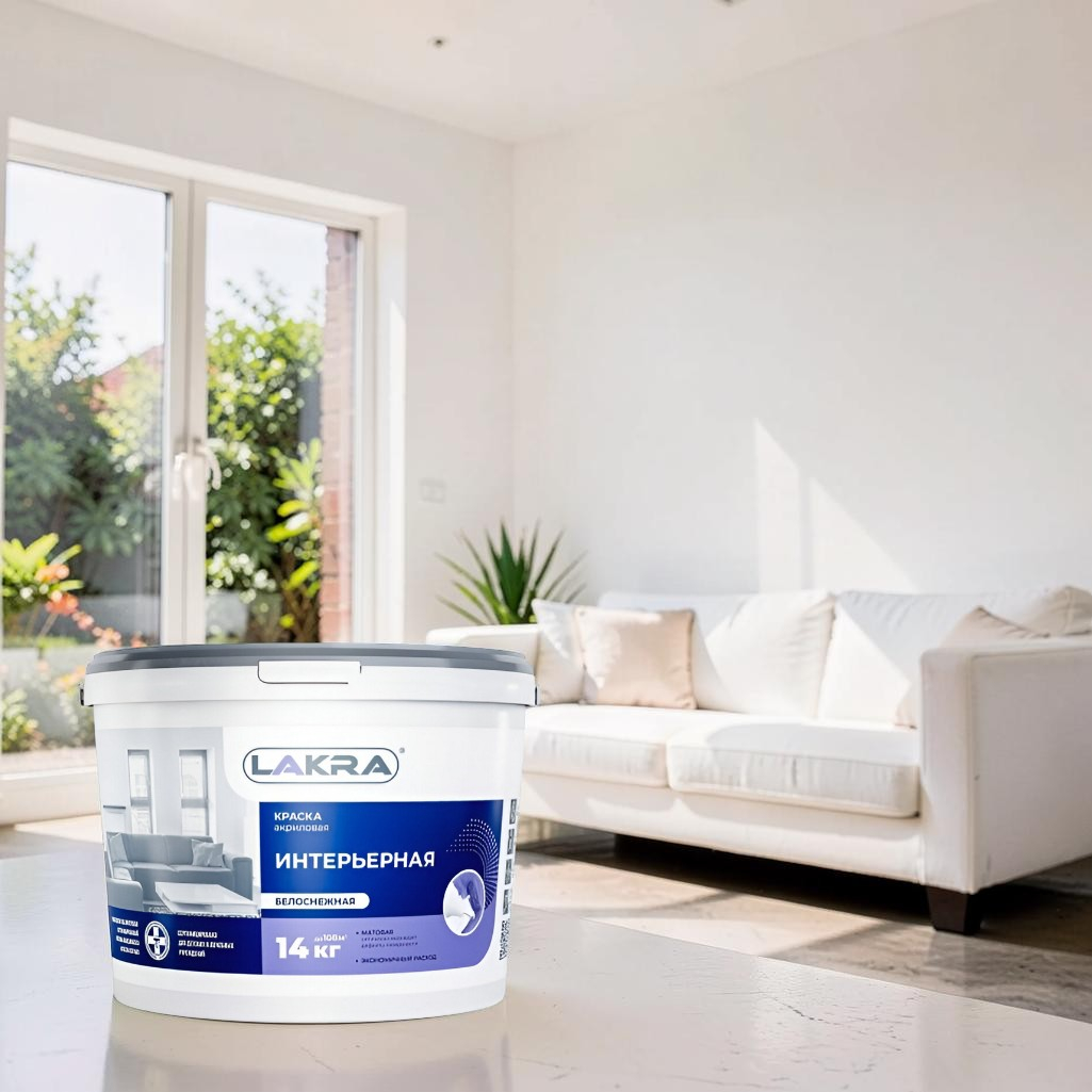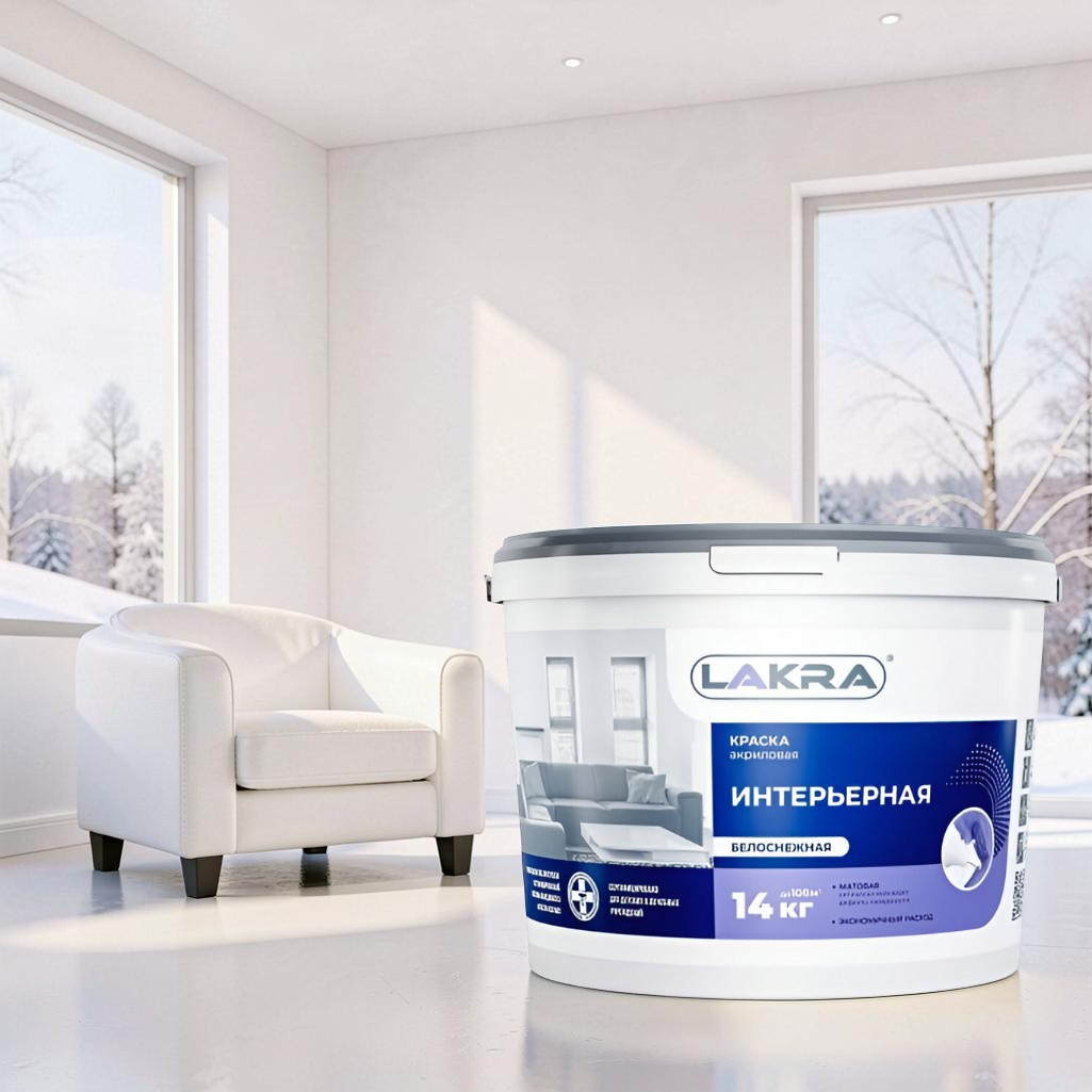 - Краска ЛАКРА акриловая, интерьерная, белоснежная 14кг