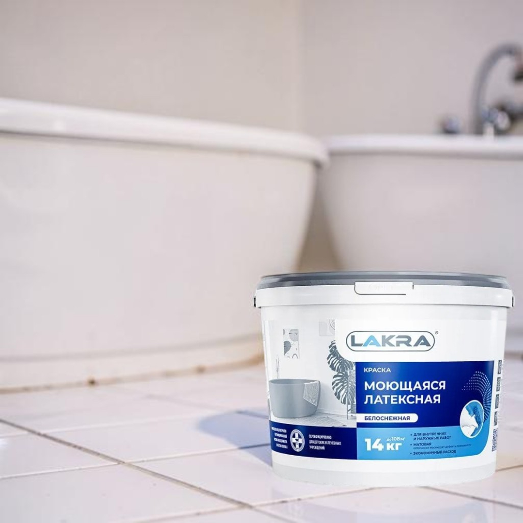 Описание краски Лакра 8306484 интерьерная, моющаяся, белоснежная, матовая, 14 кг