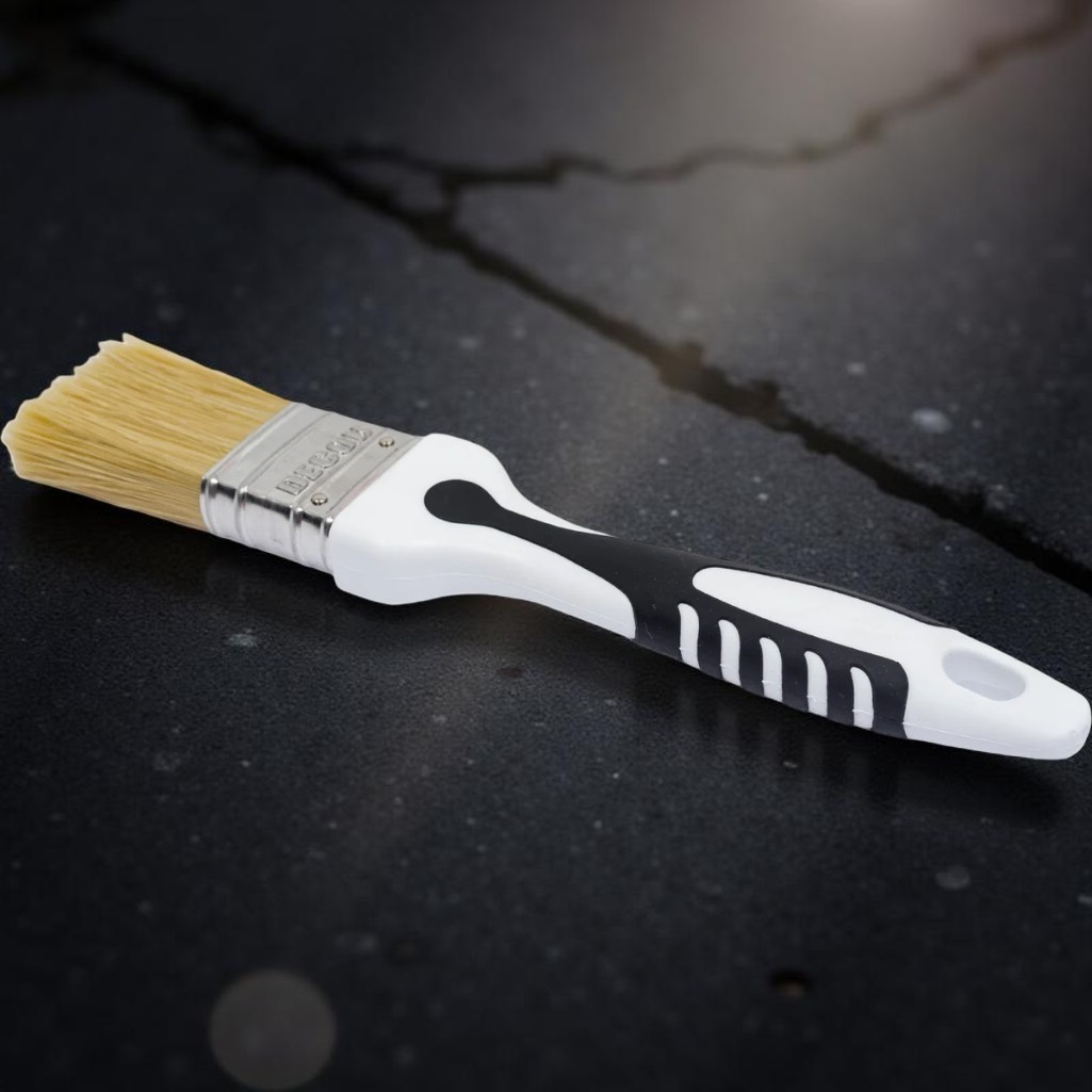 Кисть плоская Black White Premium 860-035 универсальная 35х15 мм, серебристая щетина Этот инструмент предназначен для точного нанесения густых составов, таких как водоэмульсионные, акриловые и алкидные краски, лаки, грунты и шпатлёвки. Он является профессиональным решением для выполнения различных задач — от базовой грунтовки до финишной отделки. Серебристая искусственная щетина сохраняет форму даже при работе с вязкими материалами, идеально имитируя мягкость и равномерность нанесения натуральной щетины. Она подходит для использования с алкидными эмалями, деревозащитными маслами и густыми грунтовками. Двухкомпонентная рукоятка обеспечивает надежный захват, комфорт при длительной работе и минимизирует усталость рук, даже если вы работаете в перчатках.