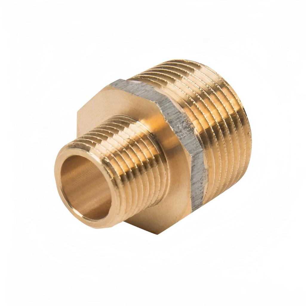 Ниппель резьбовой Viega 1"-1/2", НР-НР, RX 320287, переходной, бронза - предназначен для соединения труб разного диаметра. Изготовлен из высококачественной бронзы, может использоваться в системах хозяйственно-питьевого водоснабжения, а также в системах отопления, водяного охлаждения, сжатого воздуха, гелиосистемах, газоснабжении и других отраслях. Имеет наружная резьбаужные конические резьбы и внешний многогранник для фиксации гаечным ключом.