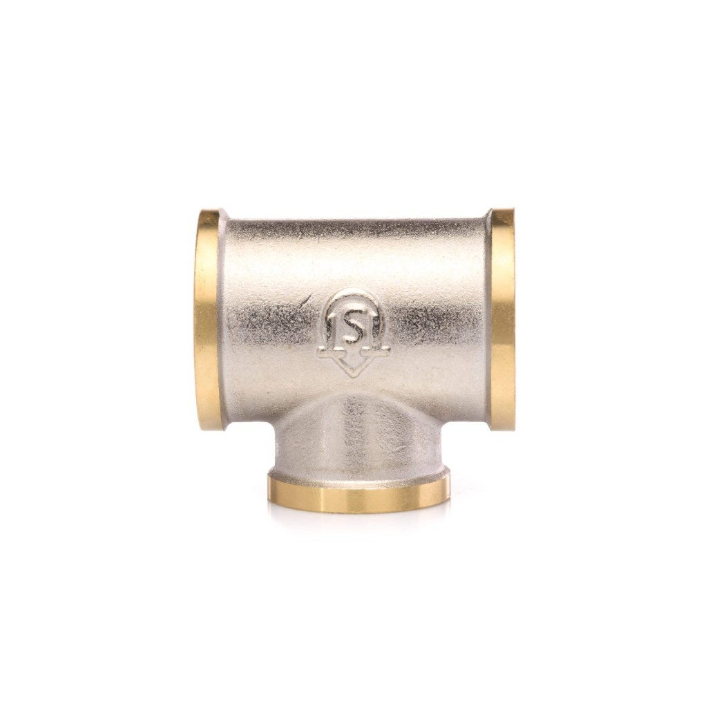 Тройник резьбовой TST 1"-1/2"-1" ВР-ВР-ВР, TST.142.050305, переходной, латунь представляет собой латунный резьбовой фитинг с внутренней резьбы (ВР), предназначенный для создания разветвлений в трубопроводных системах. Изделие изготовлено из качественной латуни марки CW617N, что обеспечивает устойчивость к коррозии и механическим нагрузкам.