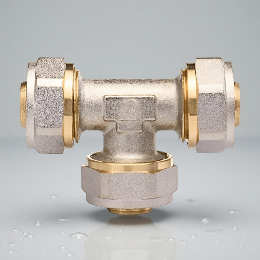 Тройник обжимной 20х20х20 мм, ц/ц/ц, латунь, для металлопластиковых труб