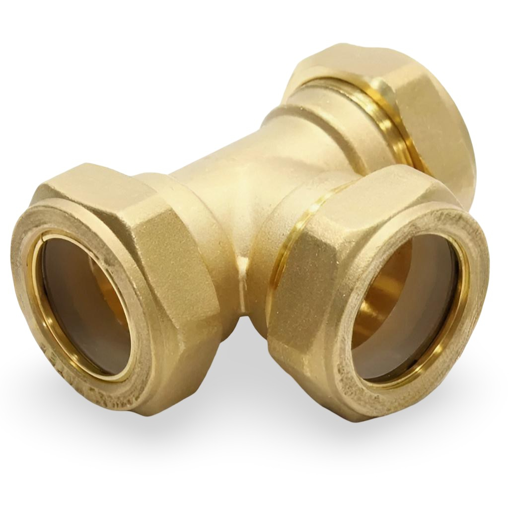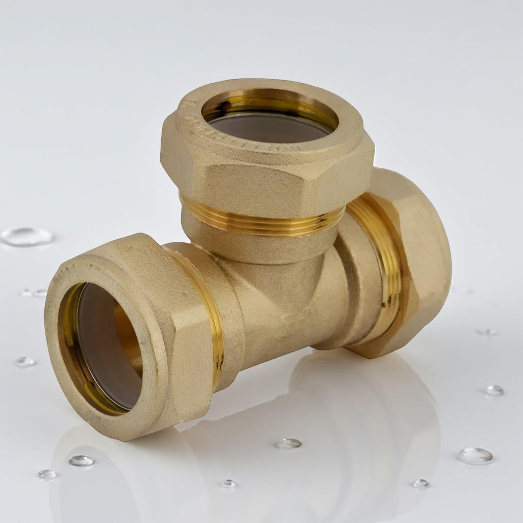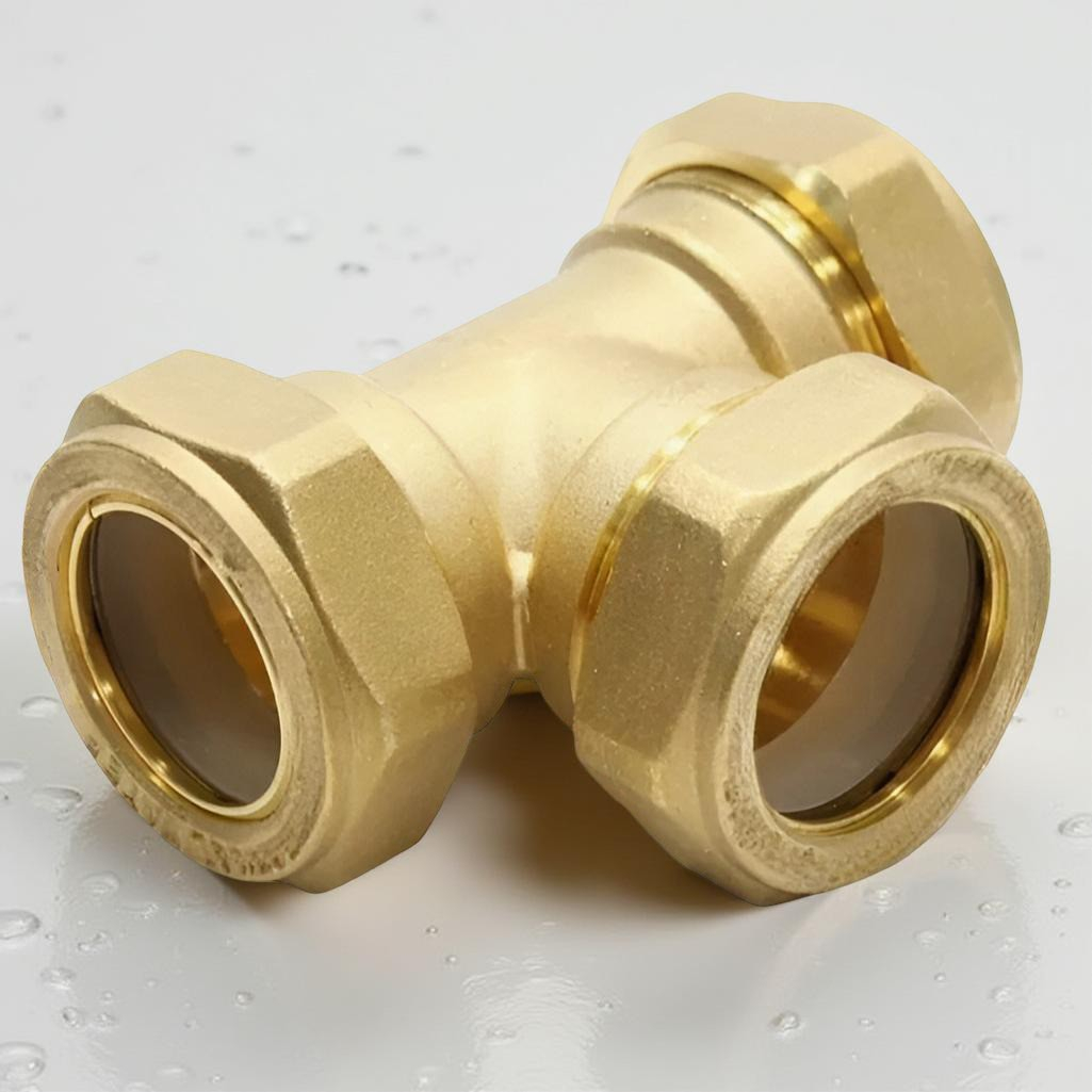 Тройник обжимной Gappo 32х32х32 мм, G1254.3232, с накидной гайкой, латунь
