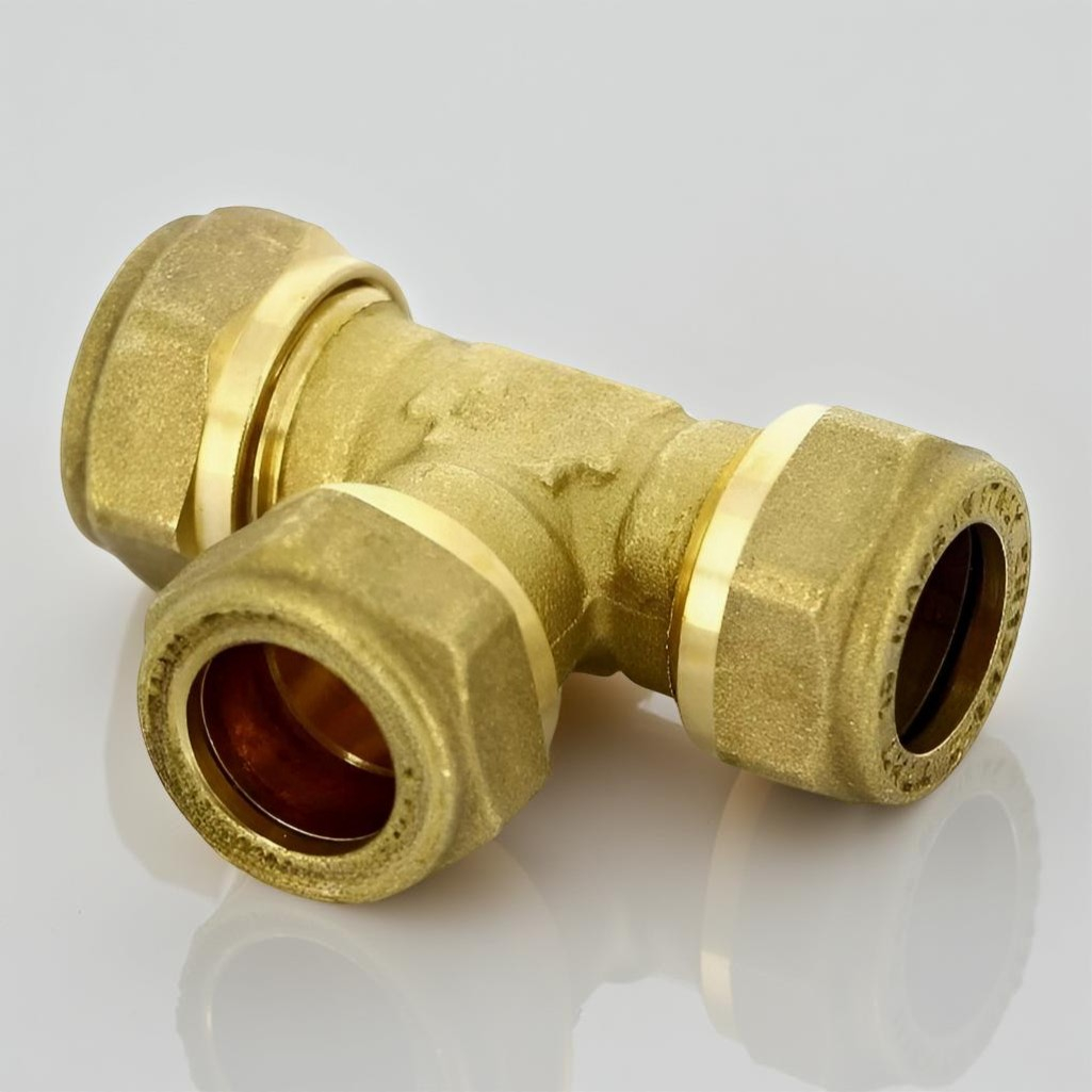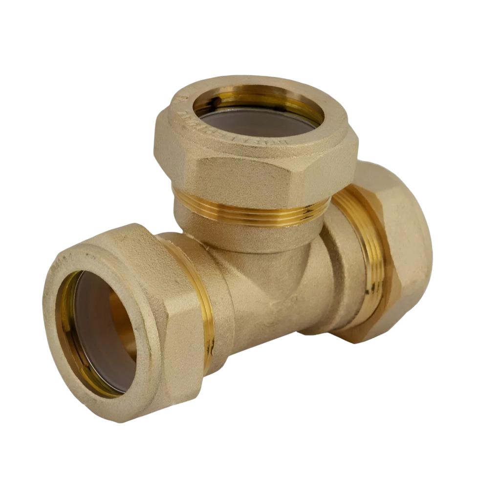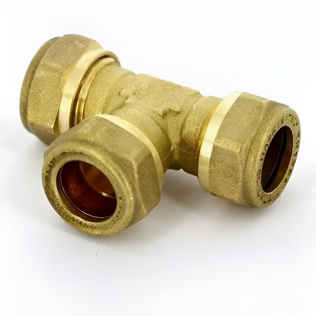 Тройник обжимной Gappo 32х32х32 мм, G1254.3232, с накидной гайкой, латунь