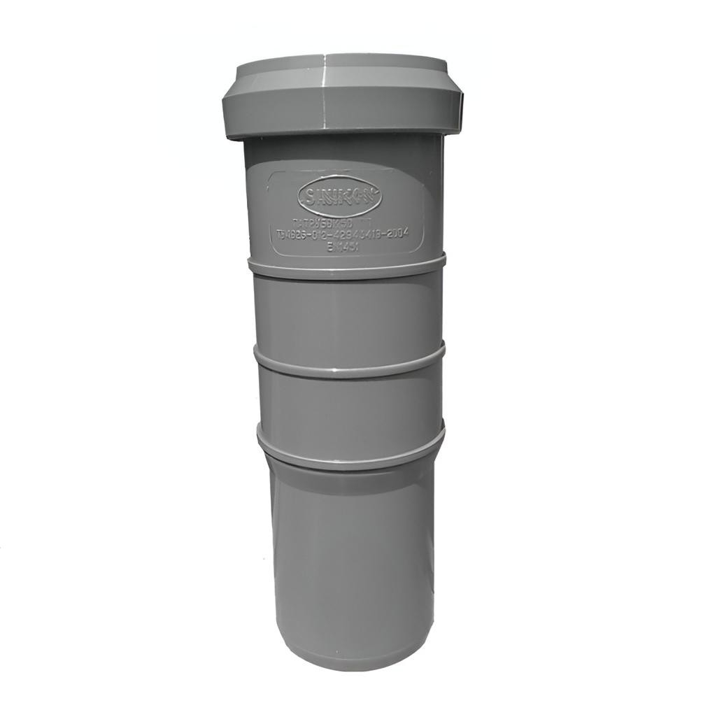 Патрубок компенсационный Sinikon 531003.R диаметр 50 мм, серый — полипропиленовый ремонтный элемент для восстановления повреждённых участков отводных канализационных линий. Удлинённый раструб позволяет компенсировать линейные расширения и обеспечивает надёжное соединение при ремонте.