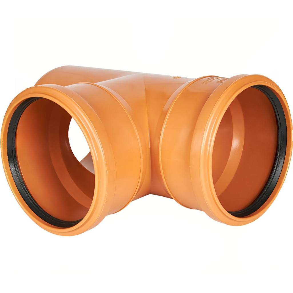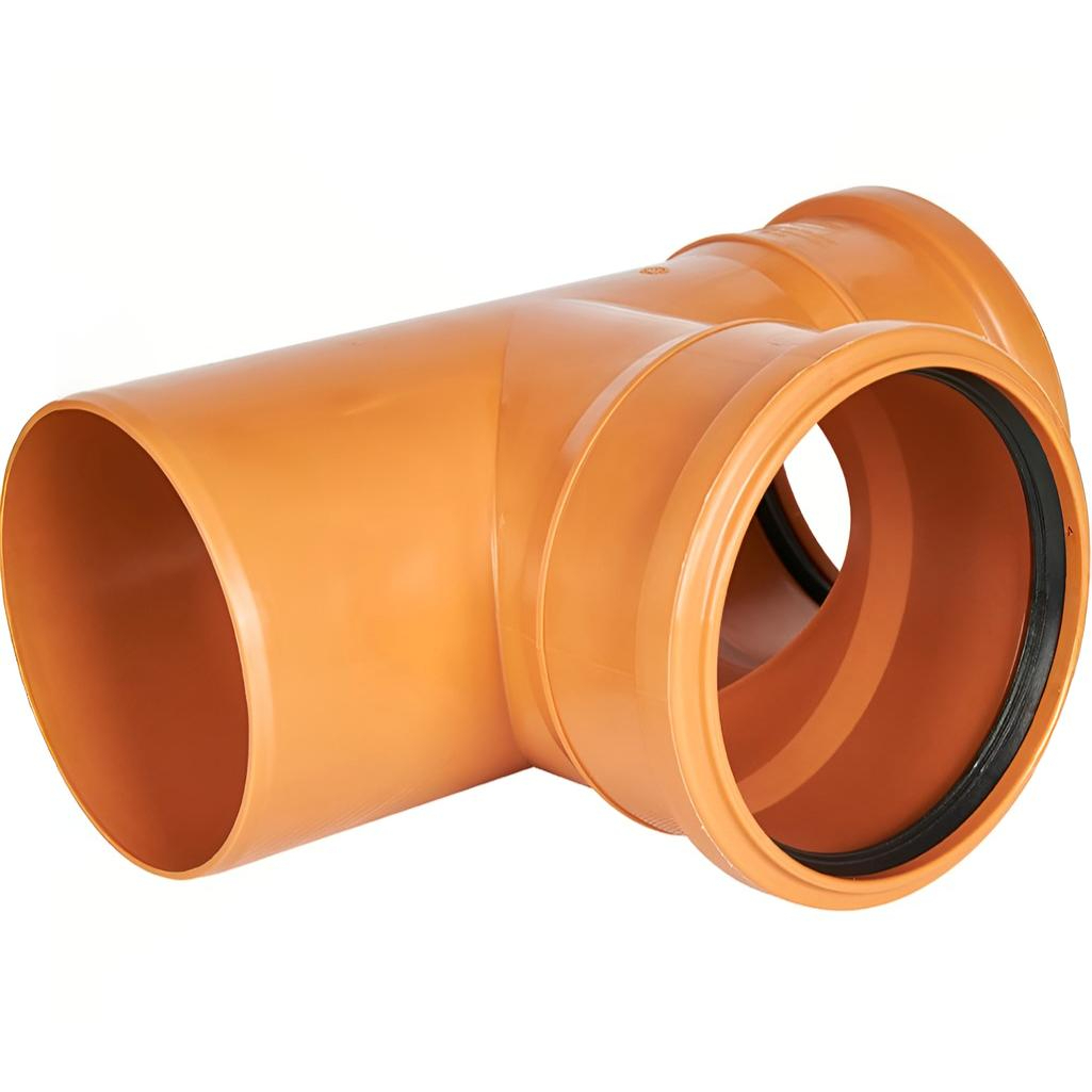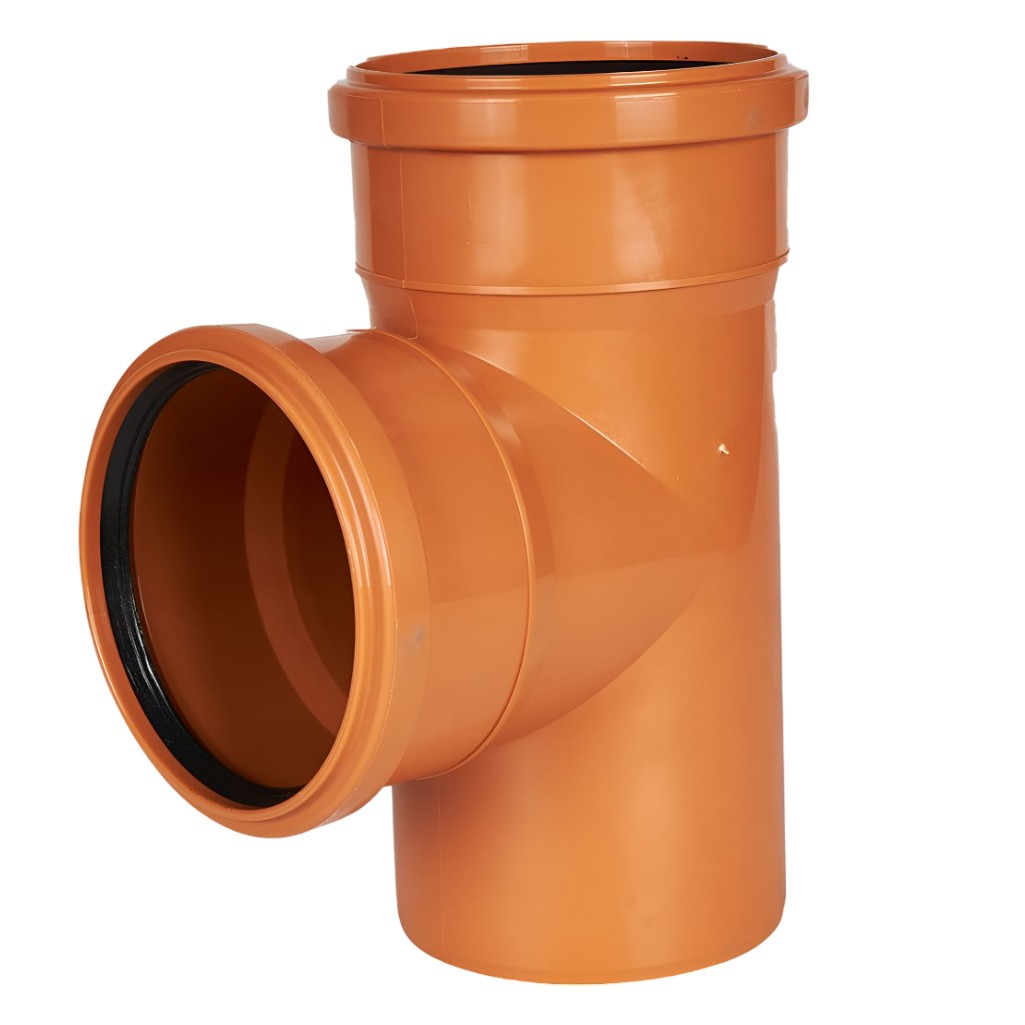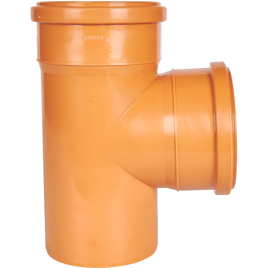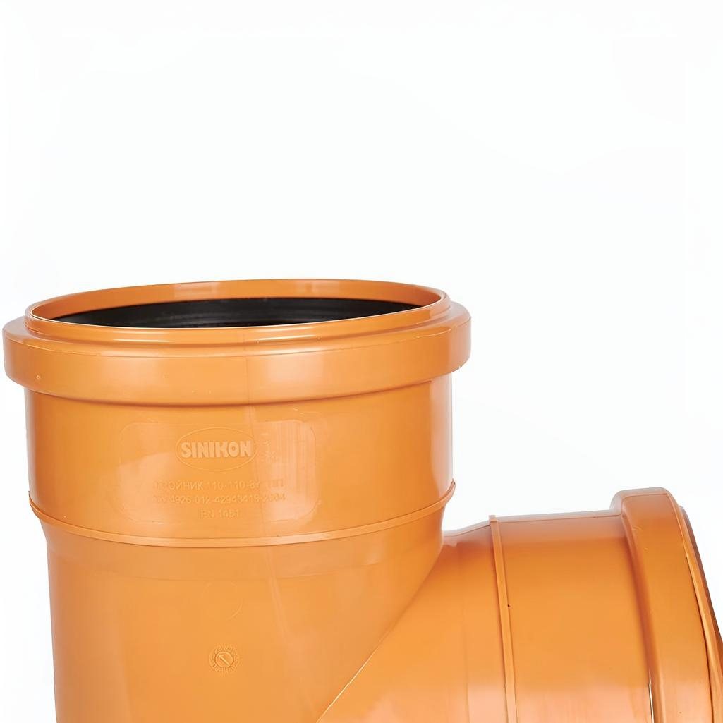 Тройник канализационный 87 гр. Sinikon 21300.R.B, диаметр 110х110 мм, красный — фасонная деталь для разветвления наружной канализационной системы. Предназначен для создания ответвлений под углом 87 градусов от магистральной линии того же диаметра.
