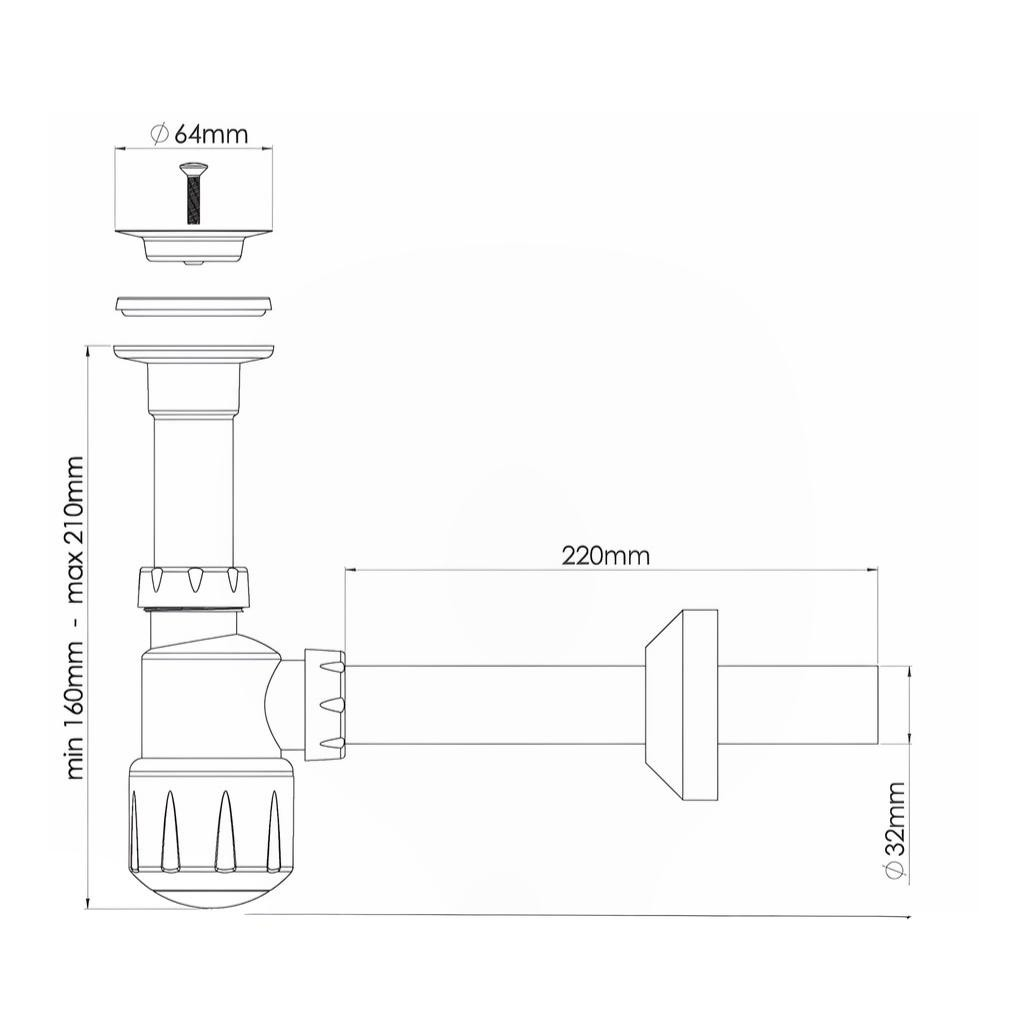 - 1012 Сифон для умывальника с выпуском 64 мм,выход 32мм(Nova Plumbing Solution)