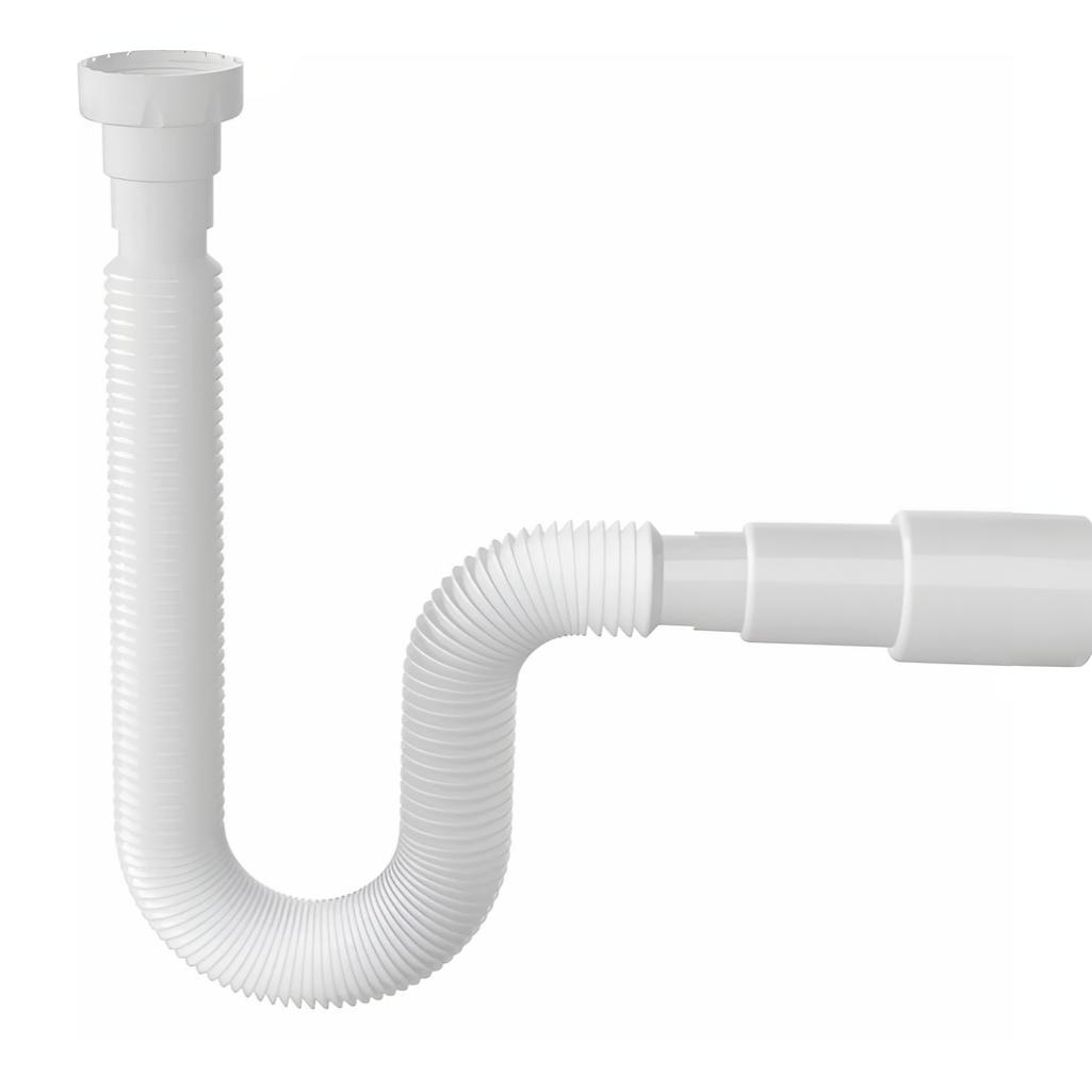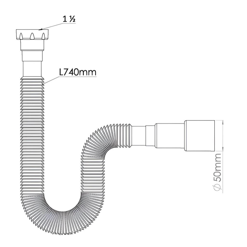 Труба гофрированная McAlpine Nova 1315 гибкая, раздвижная с гайкой, вход 1 1/2", выход 40/50 мм, длина 740 мм, белая применяется для подключения сифонов моек и раковин к системе канализации. Вход с резьбой 1½" и накидной гайкой подходит для стандартных сифонов, выход диаметром 40/50 мм соединяется с канализационным отводом.