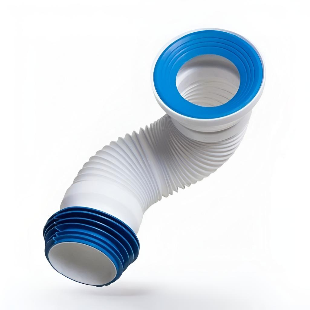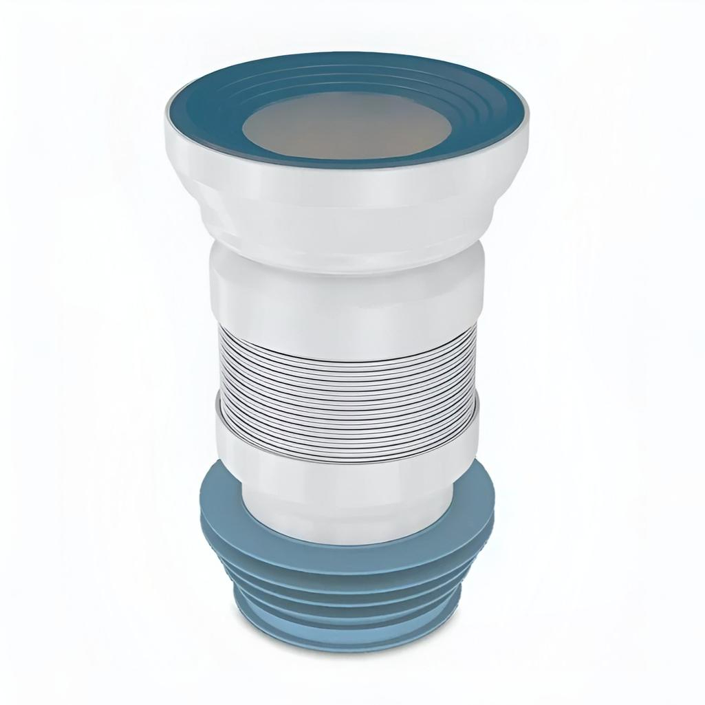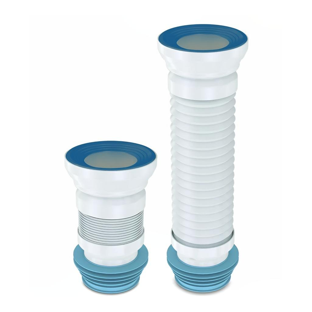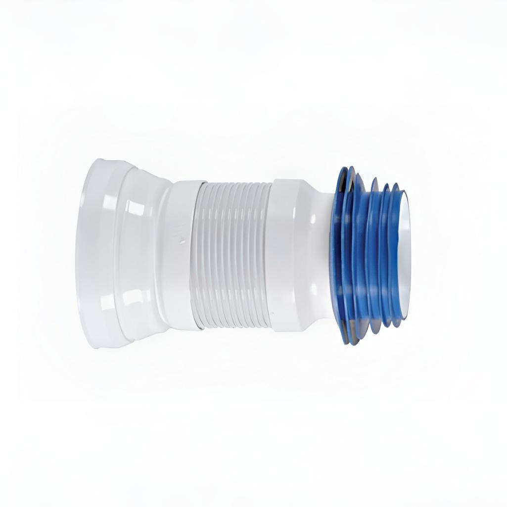 Гибкая труба для унитаза Nova 7013, 350 мм, диаметр 110 мм, белая — полипропиленовая гофра для подключения унитаза к канализационному стоку диаметром 110 мм. Длина 350 мм обеспечивает соединение при стандартных расстояниях, гибкая конструкция компенсирует смещение между унитазом и канализацией. Уплотнительные манжеты гарантируют герметичность.