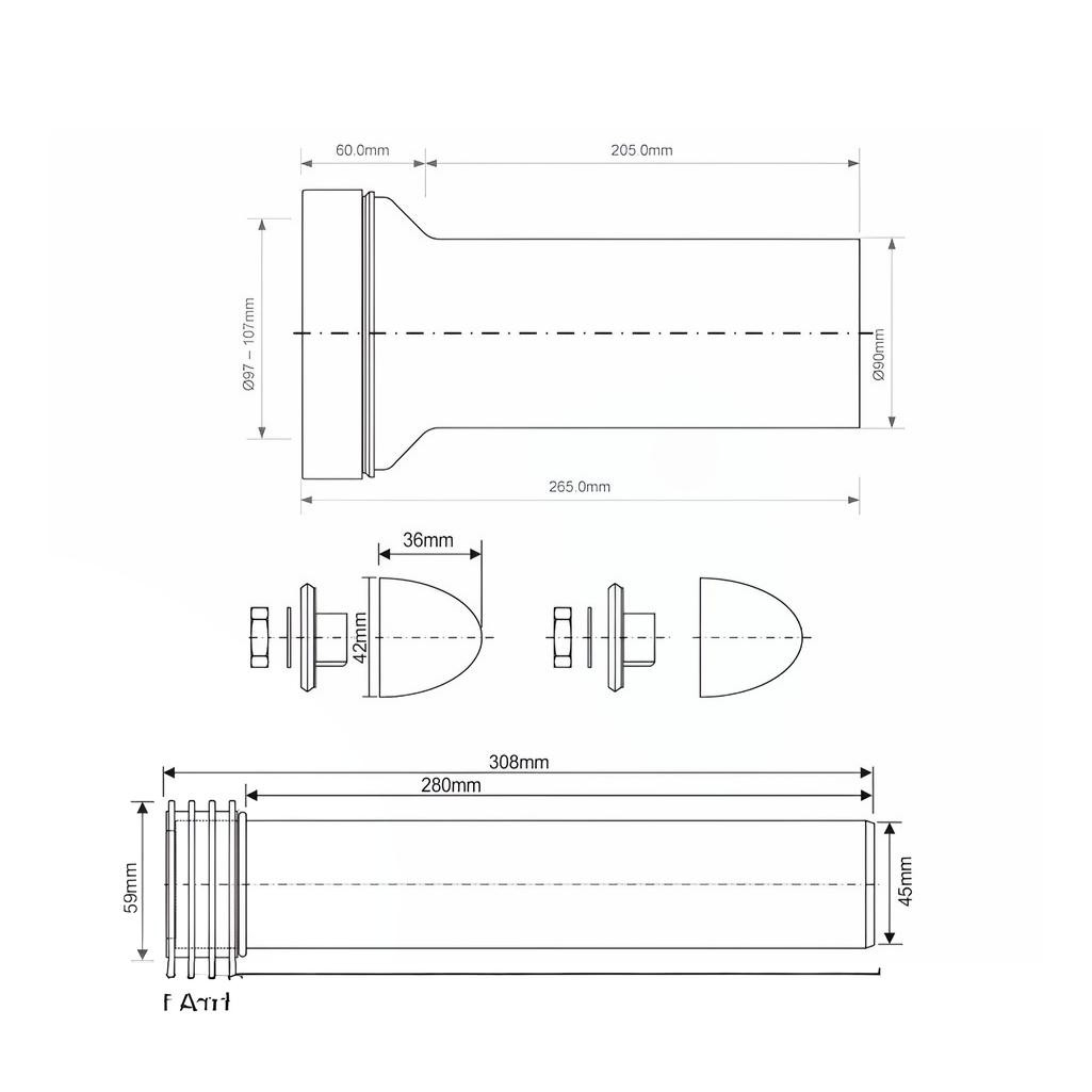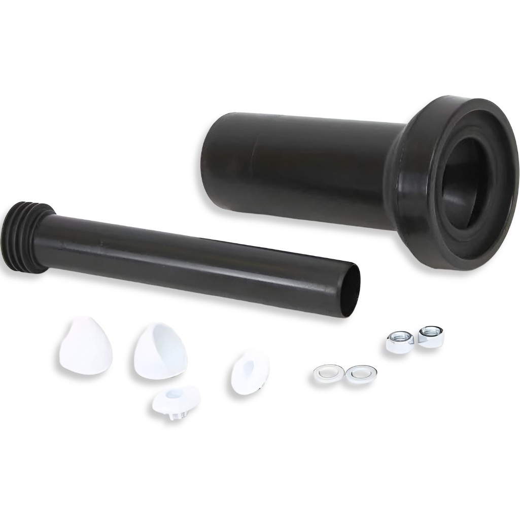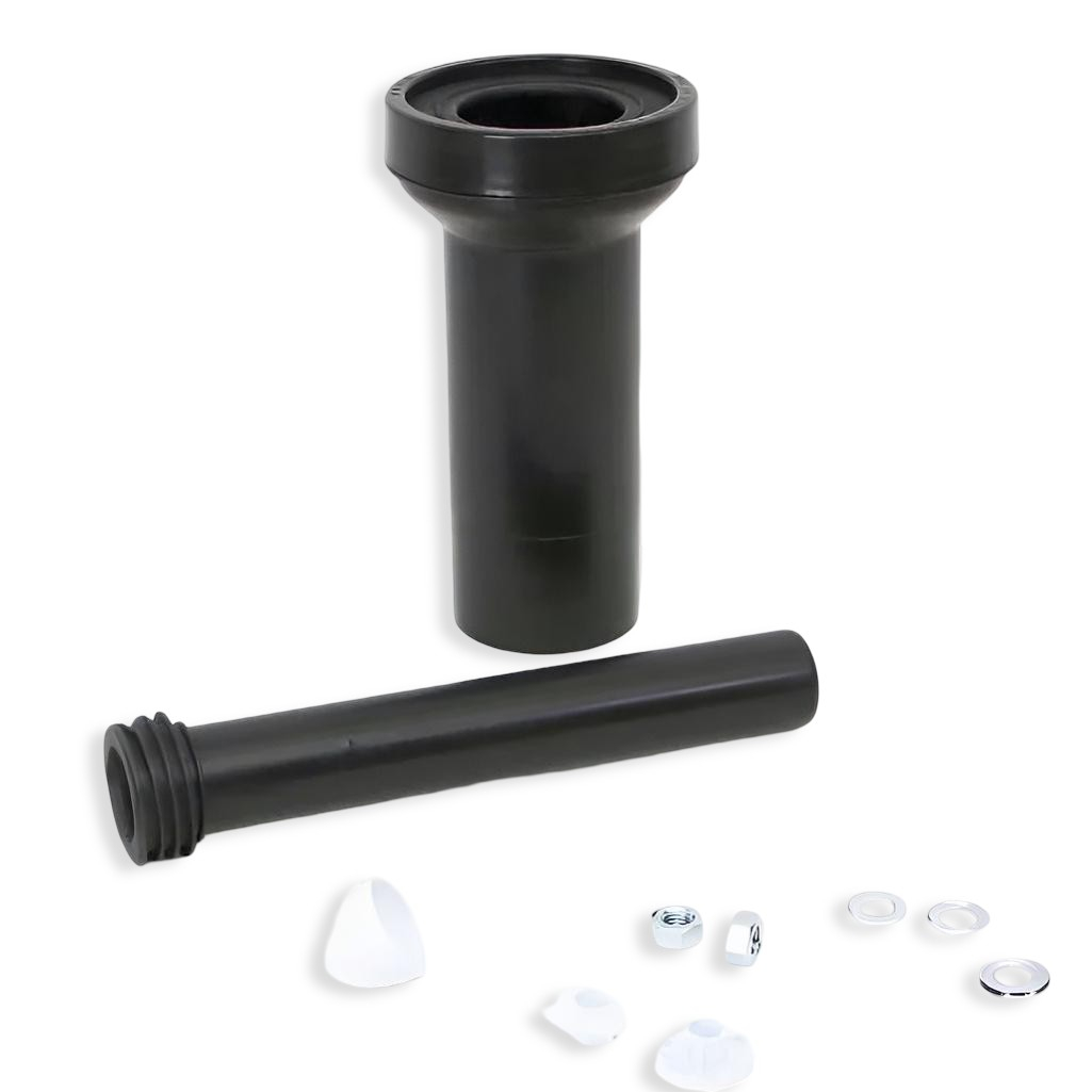 Переход для инсталляции McAlpine FP45R-KIT2, с фановой трубой 90 мм, черный — это полный комплект для подключения подвесного унитаза к канализационному и фановому стояку. Набор включает все необходимые элементы для монтажа и декоративного оформления.