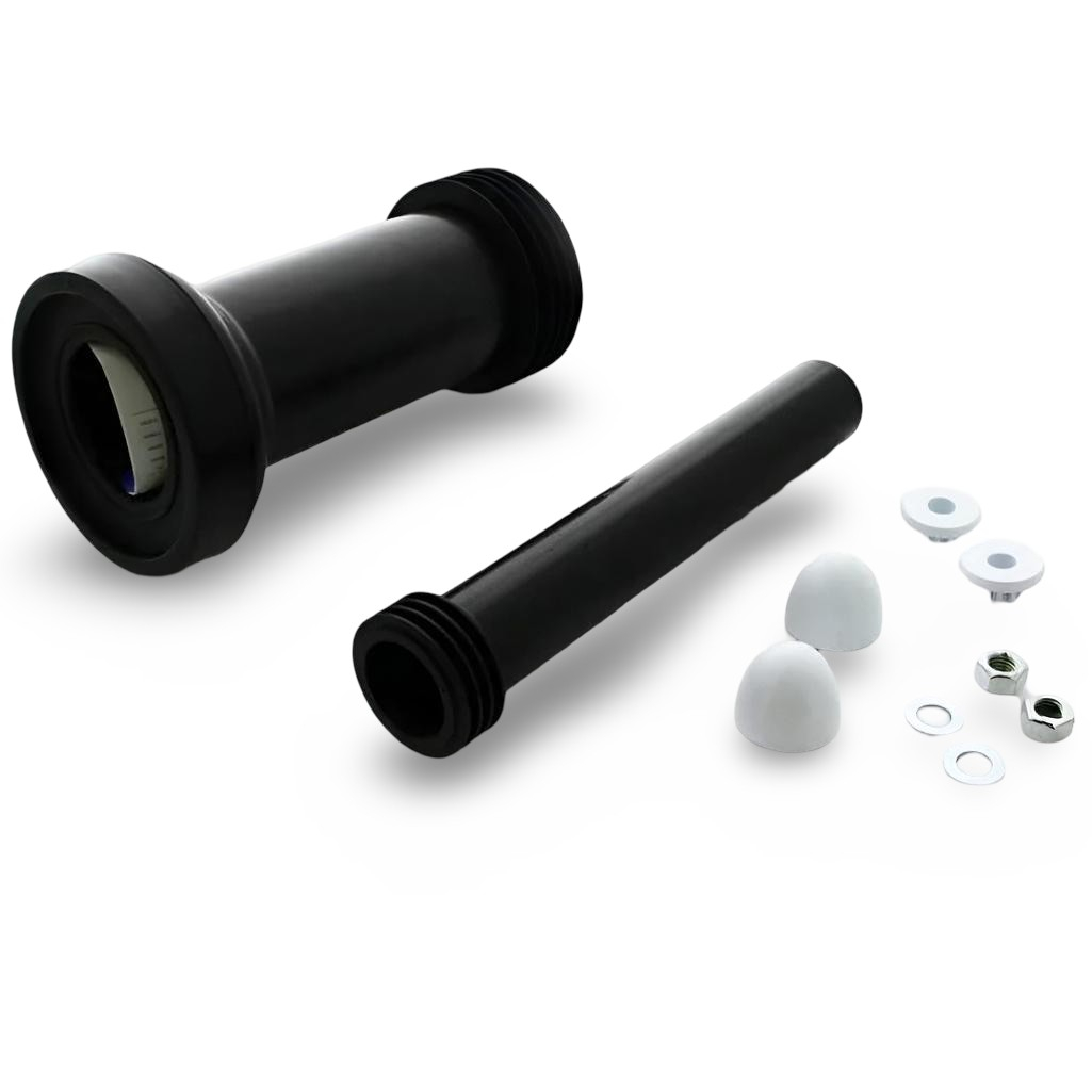 Переход для инсталляции McAlpine FP45R-KIT3 с фановой трубой 90 мм, черный — это готовый комплект для подключения инсталляции подвесного унитаза к канализационному и фановому стояку. Набор включает все элементы для герметичного монтажа и эстетичного завершения системы.