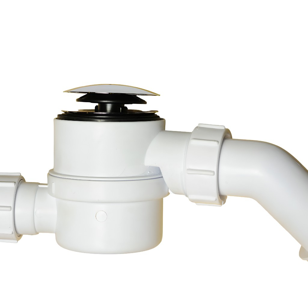 • Уникальная конструкция позволяет устранить засор через верхнюю ревизию, не разбирая сифон и не добираясь до труднодоступного пространства под ванной.