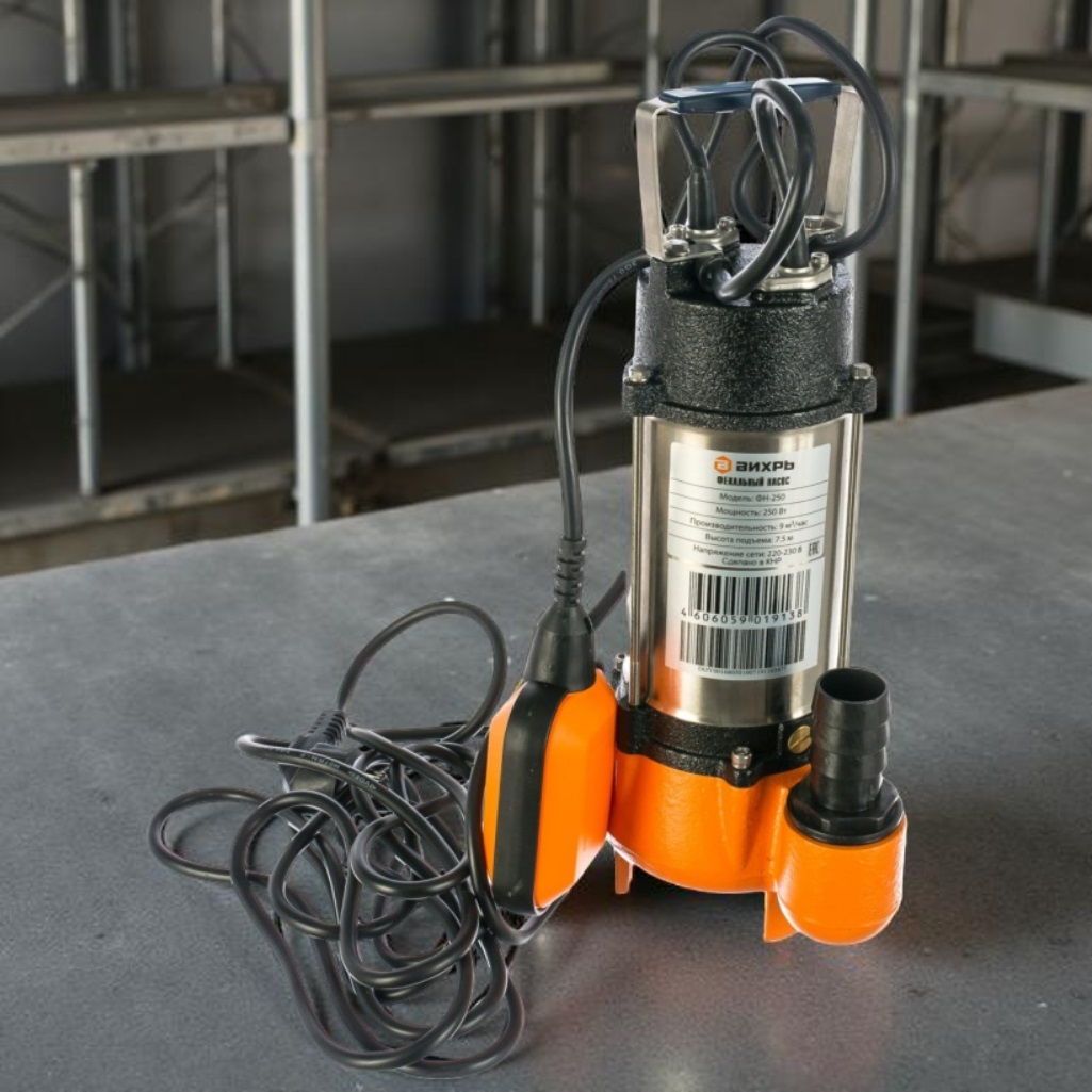 Насос фекальный Вихрь ФН-250 68/5/1 для грязной воды, 250 Вт, напор 7 м, 150 л/мин