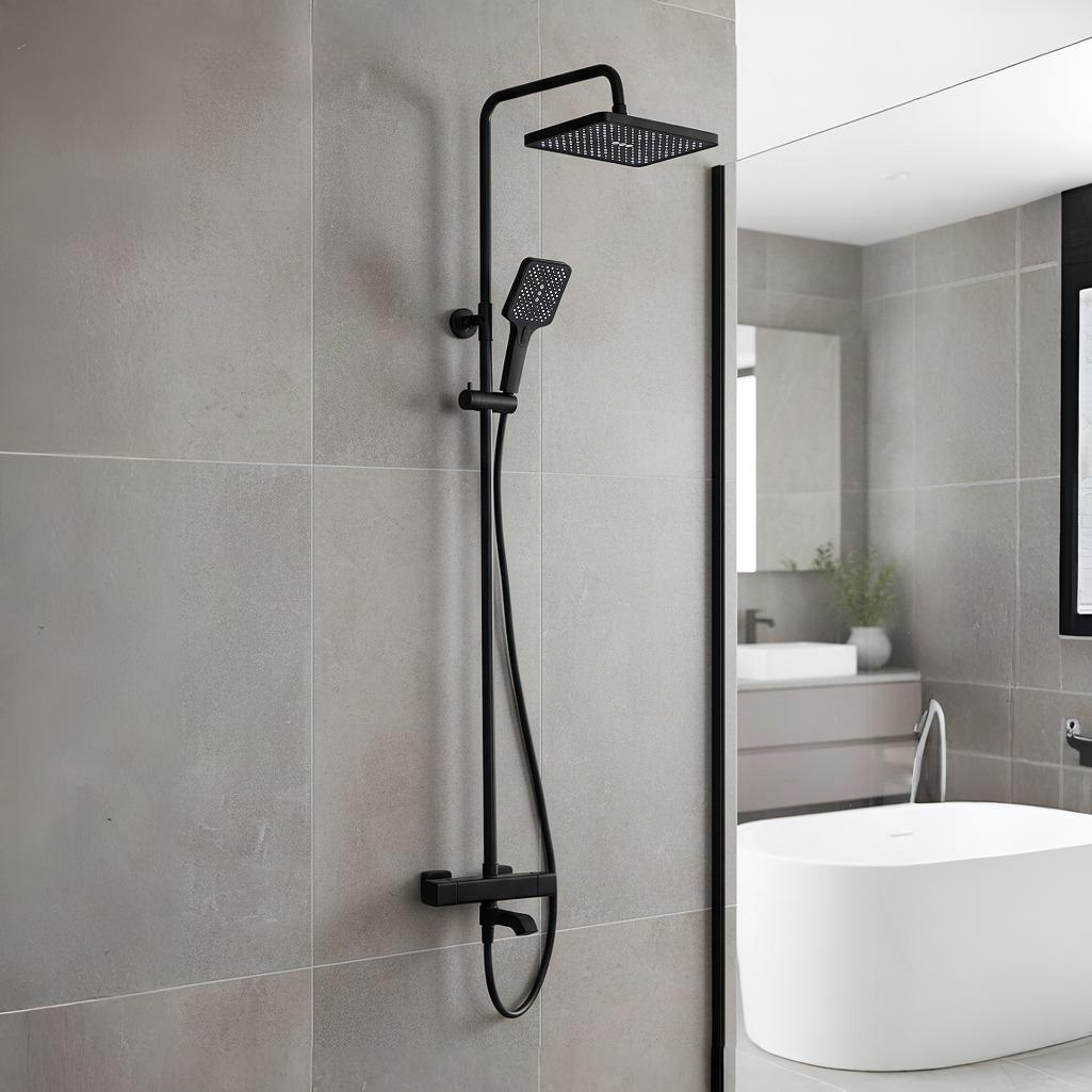 - Душевая стойка с термостатом и тропическим душем AETHERPRIDE A2491-6 (Чёрный)