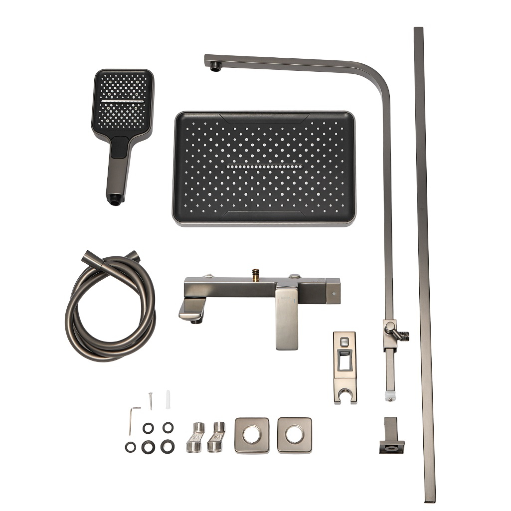 Душевая система AETHERPRIDE A2407-9 оружейная сталь, тропический душ