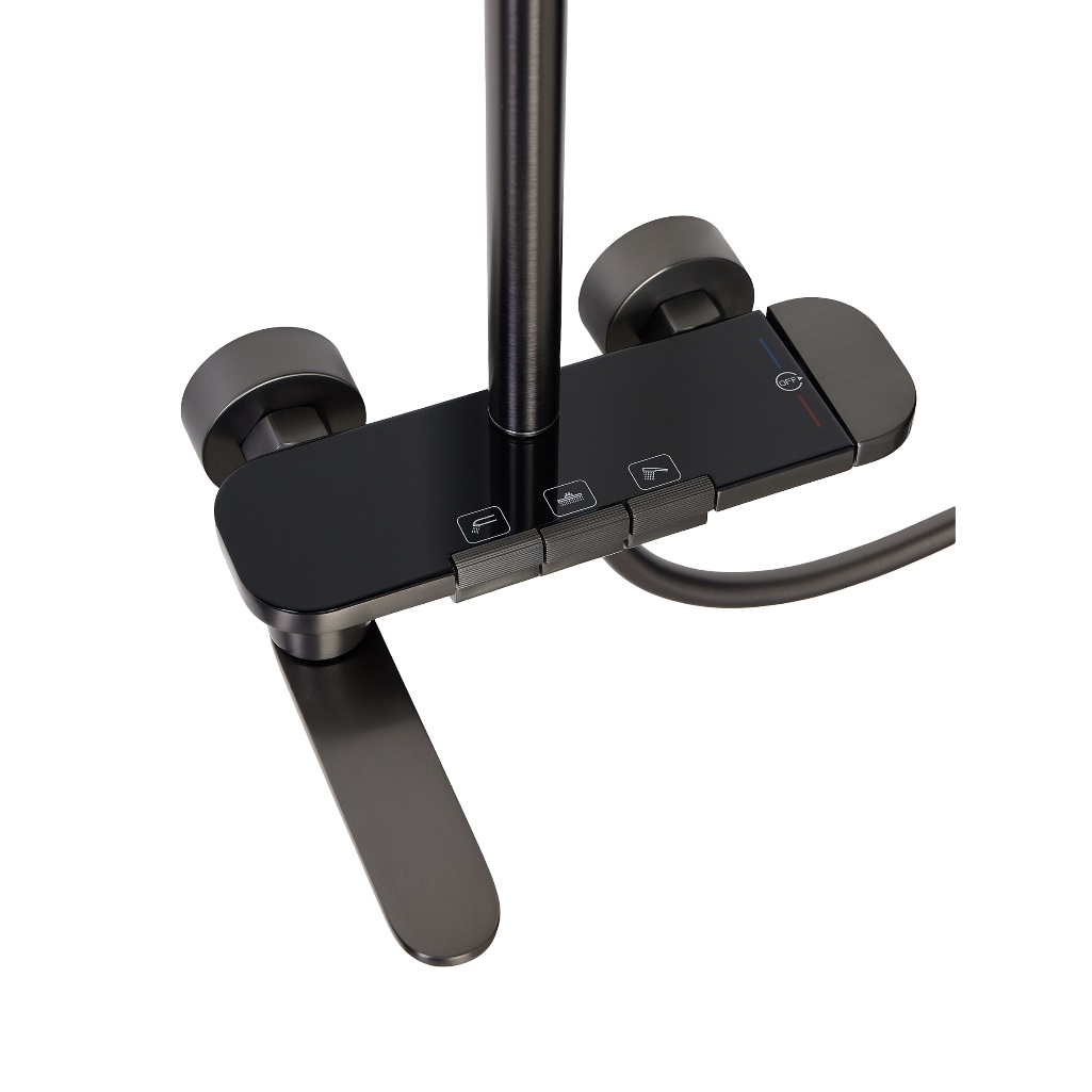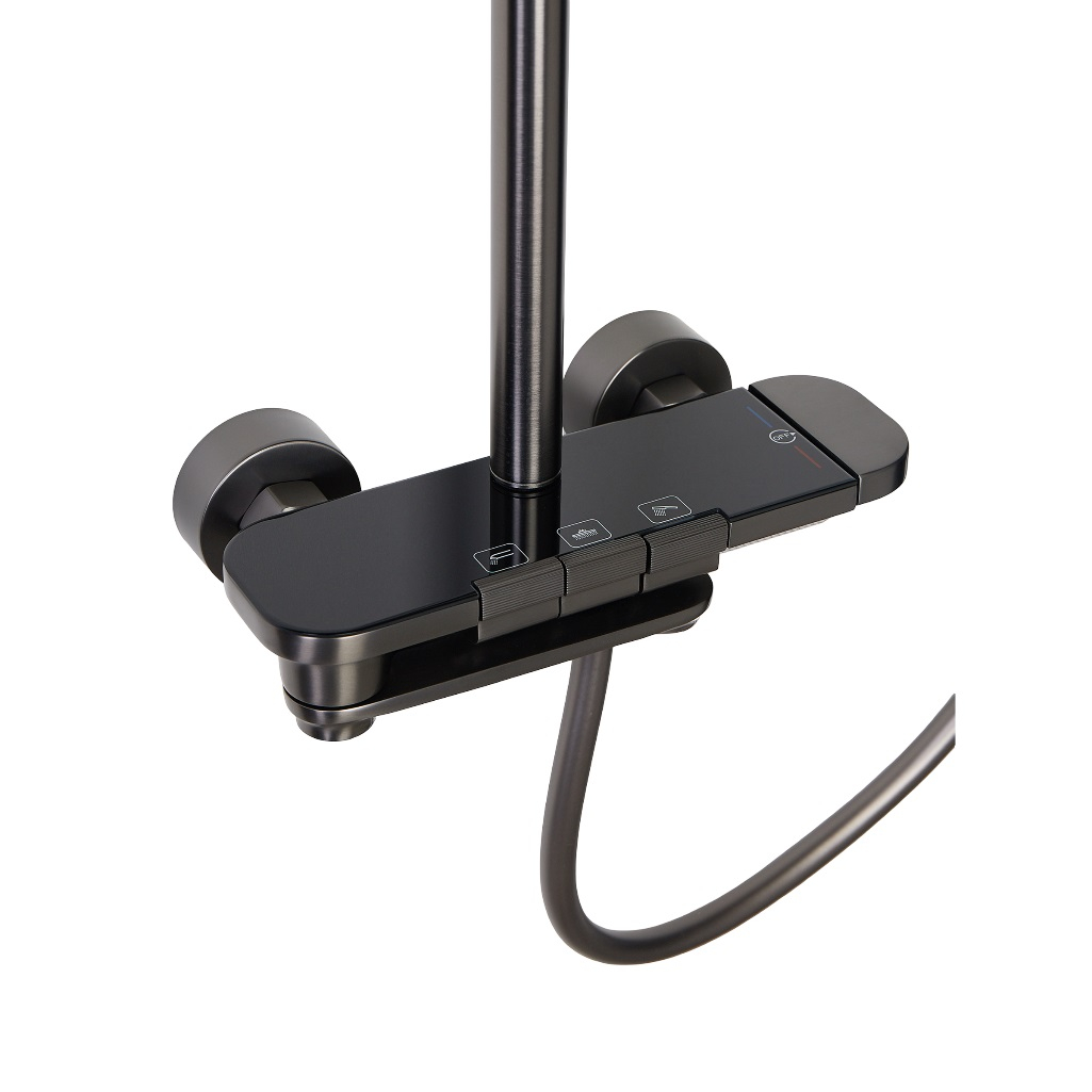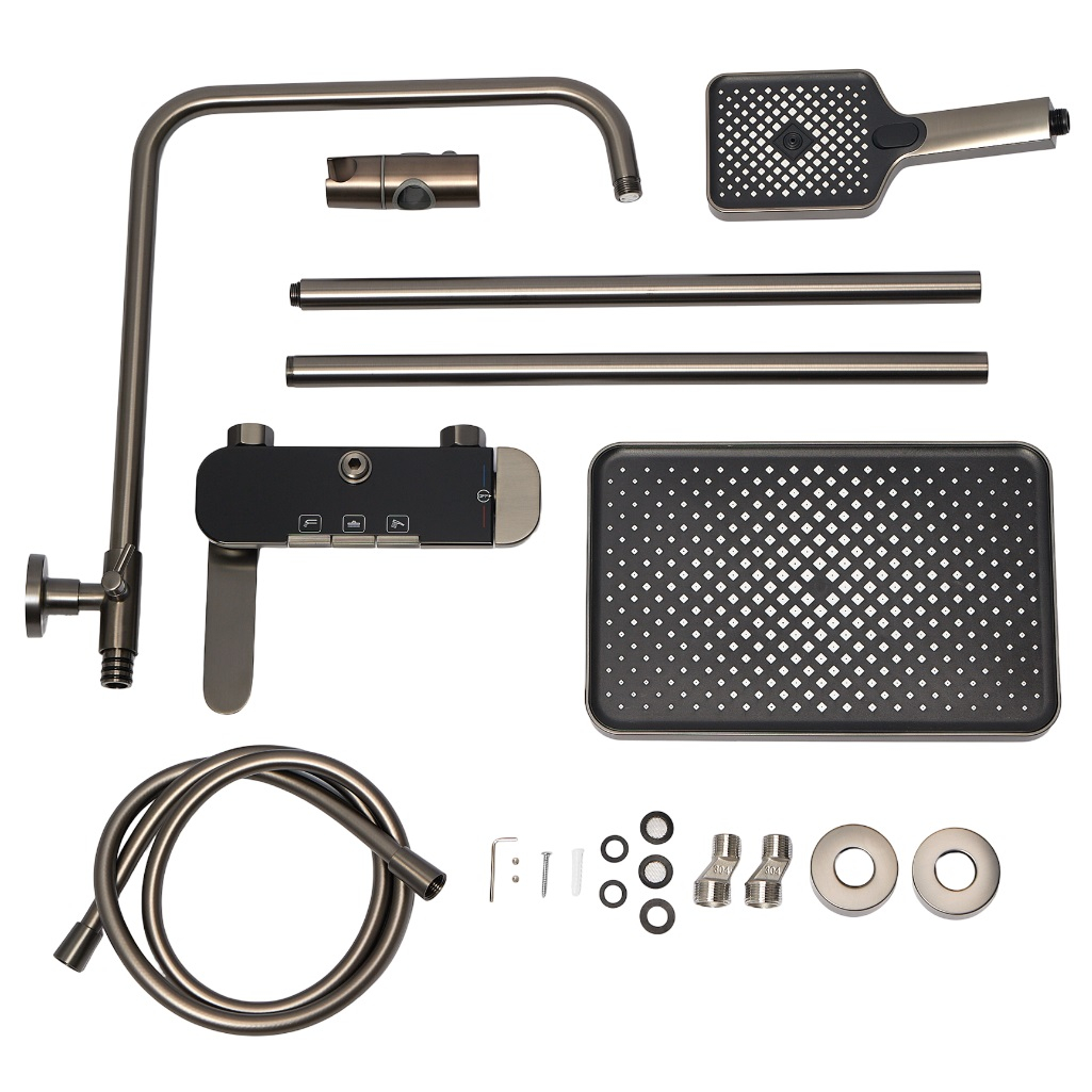 Душевая система AETHERPRIDE A2495-9 оружейная сталь, тропический дождь