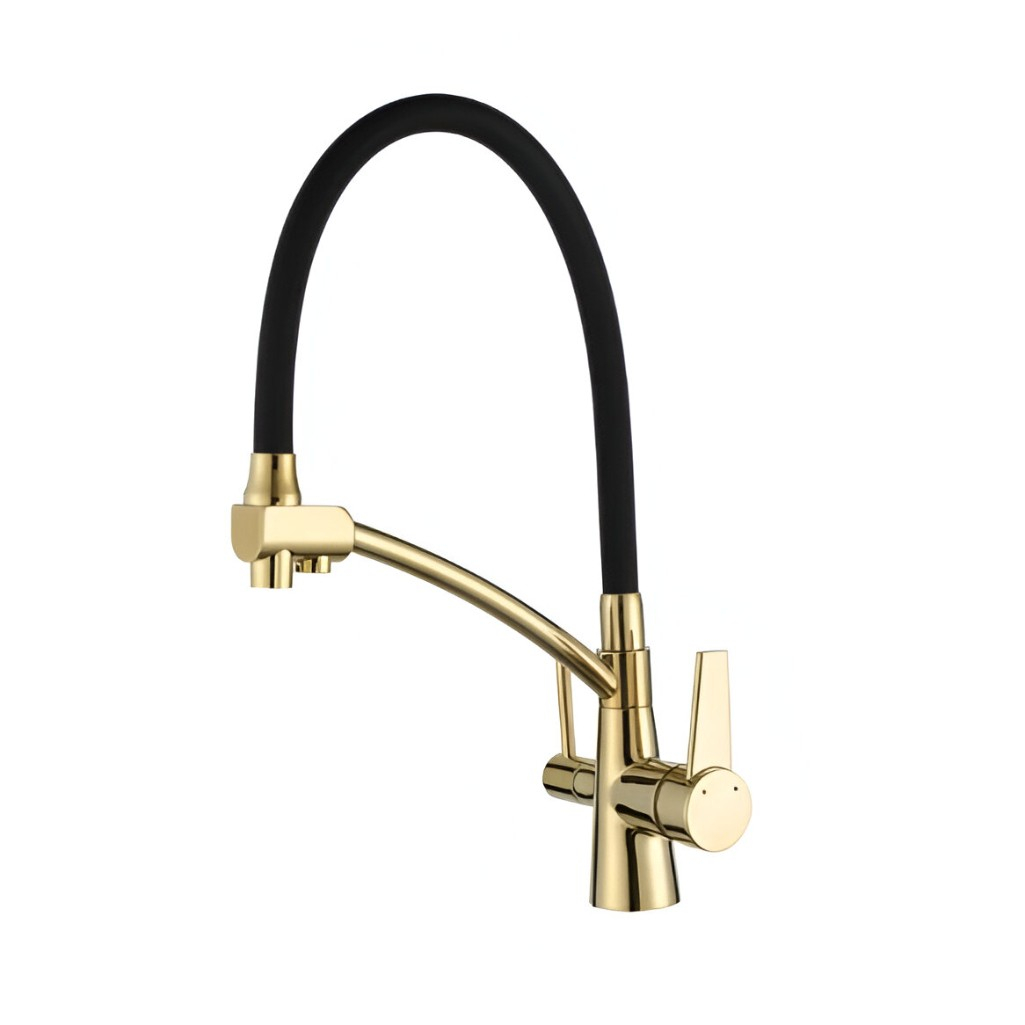 Смеситель для кухни Gappo G4398-13 гибкий излив, встроенный фильтр для питьевой воды, золото