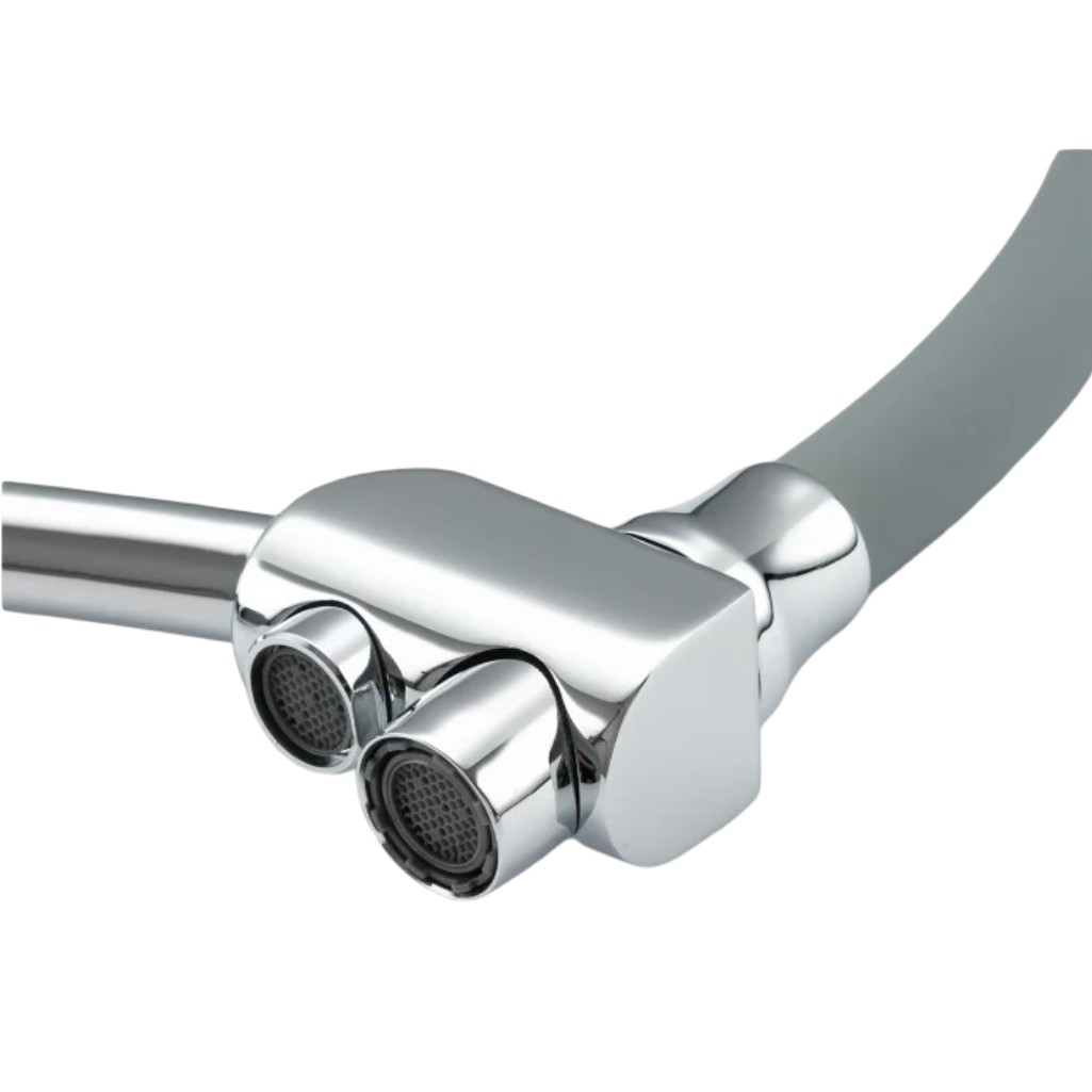 Смеситель для кухни Gappo G4398-17, серый/хром — это однорычажный смеситель с гибким изливом и функцией подключения фильтра питьевой воды. Модель объединяет два крана в одном корпусе и отличается эргономичным современным дизайном.