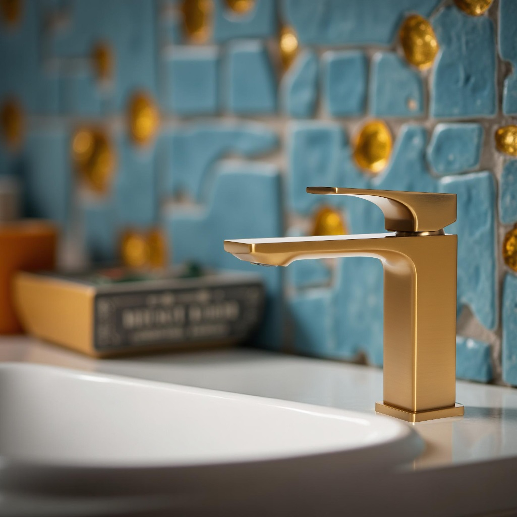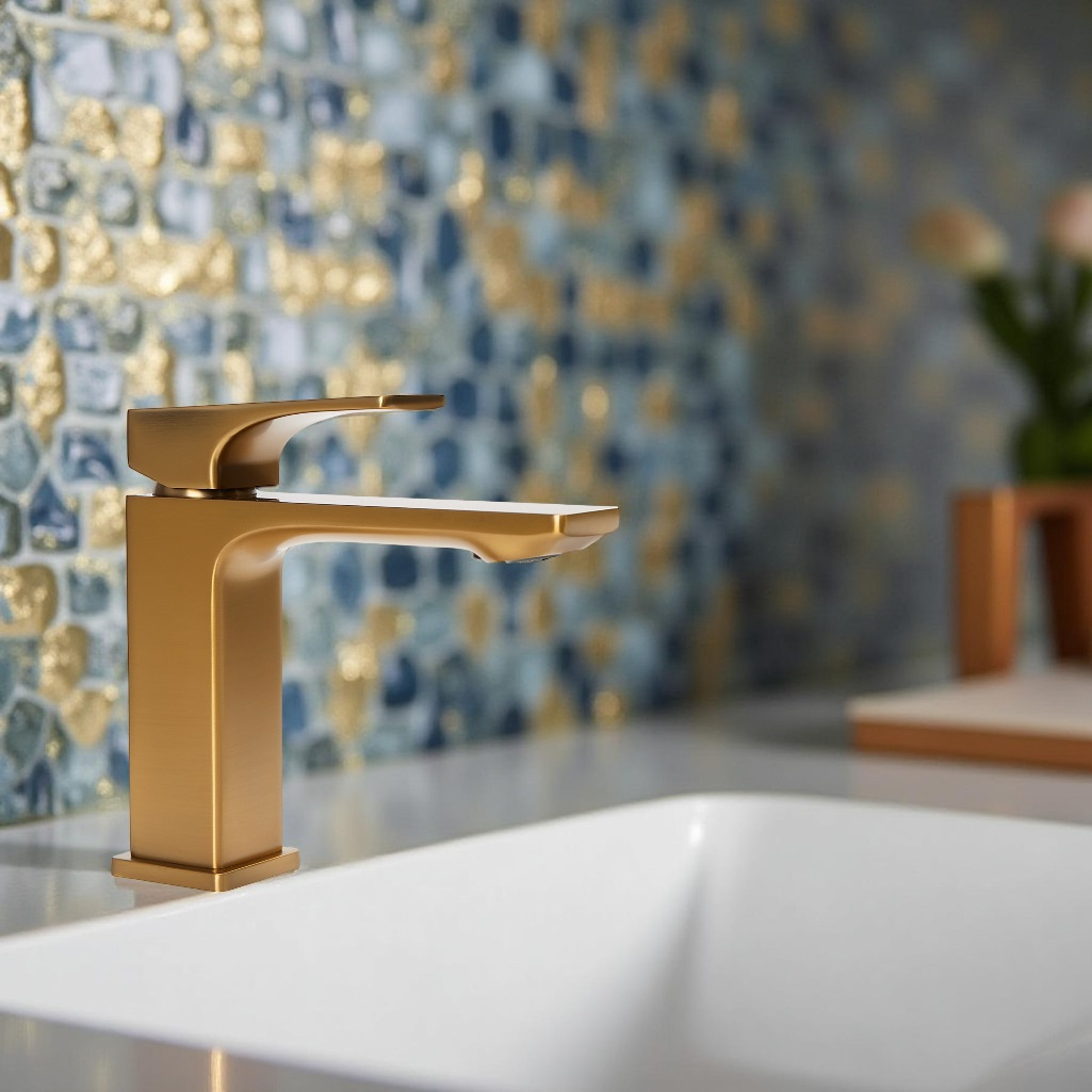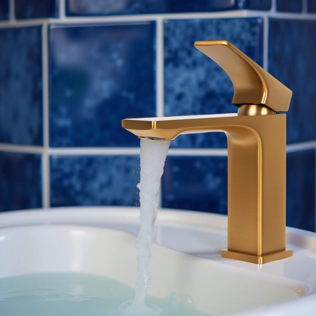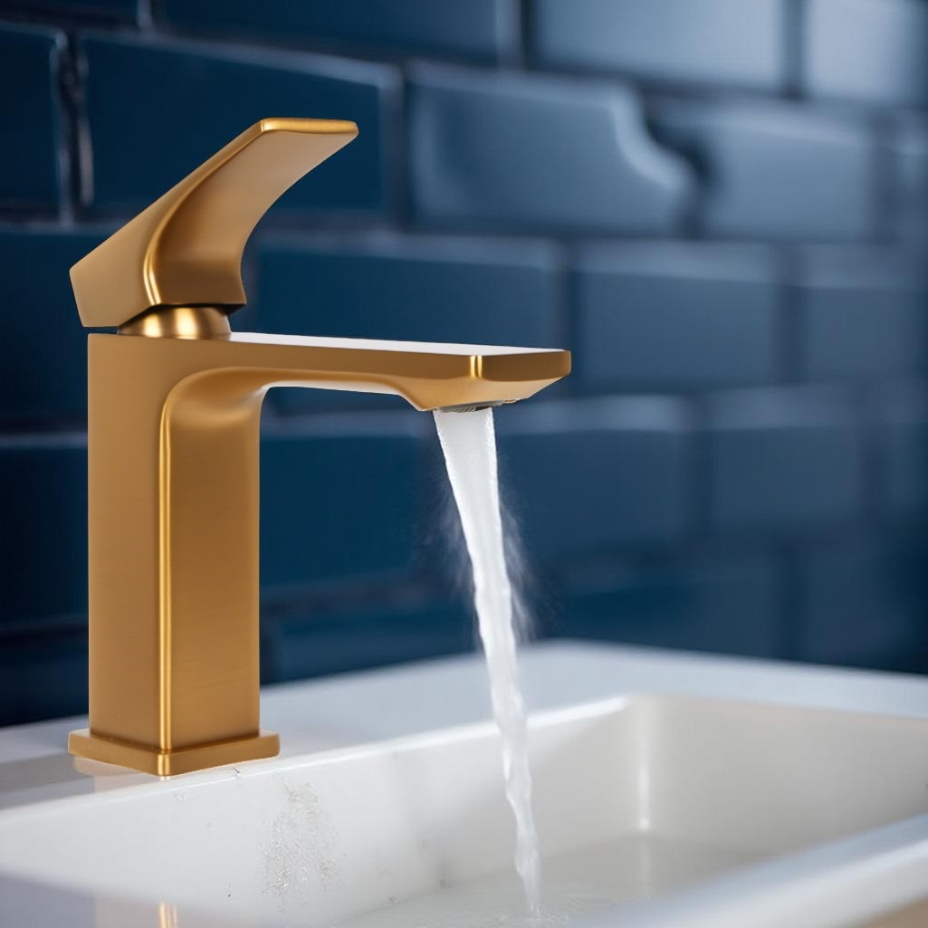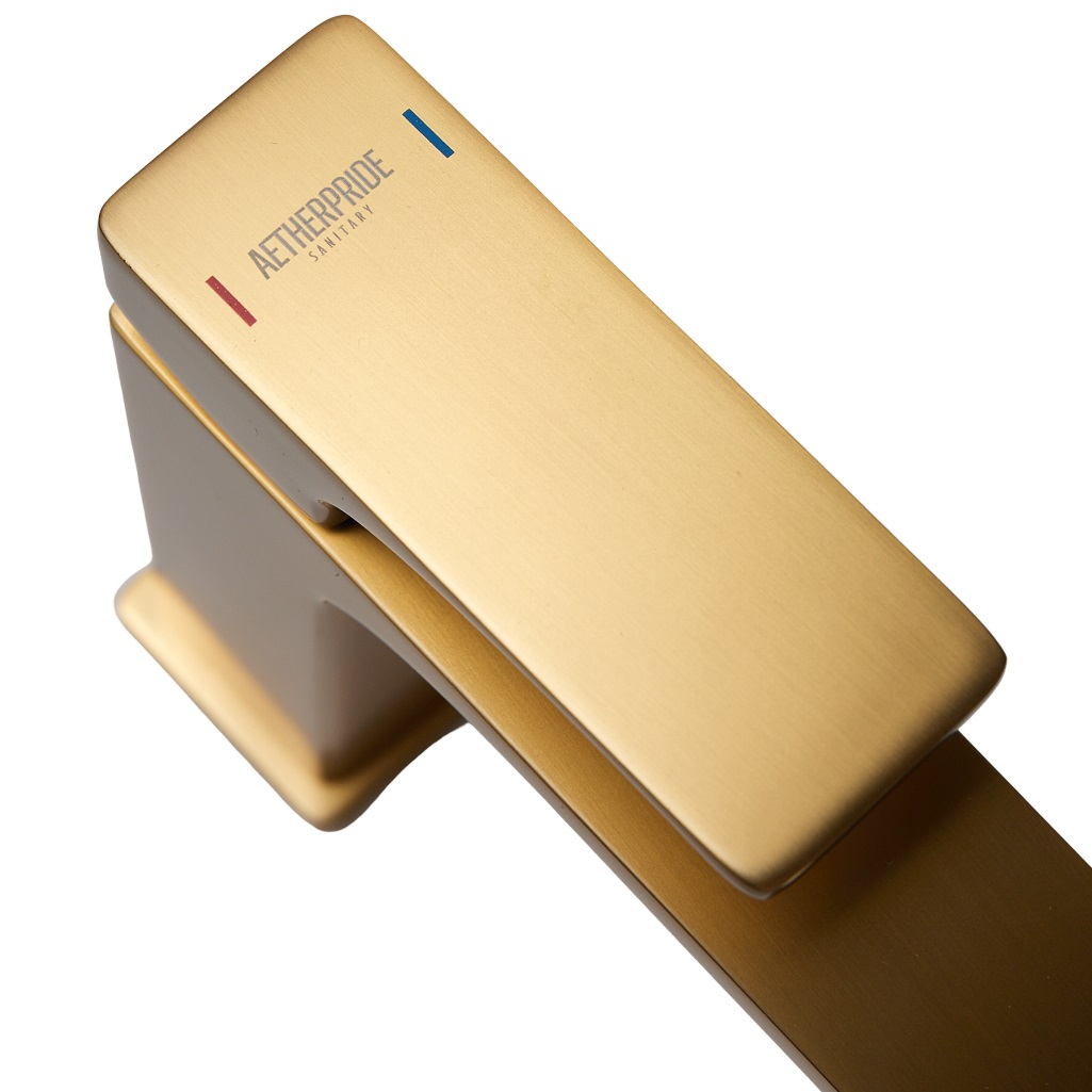 - Смеситель для раковины AETHERPRIDE A1001-3 (Сатин золотой)