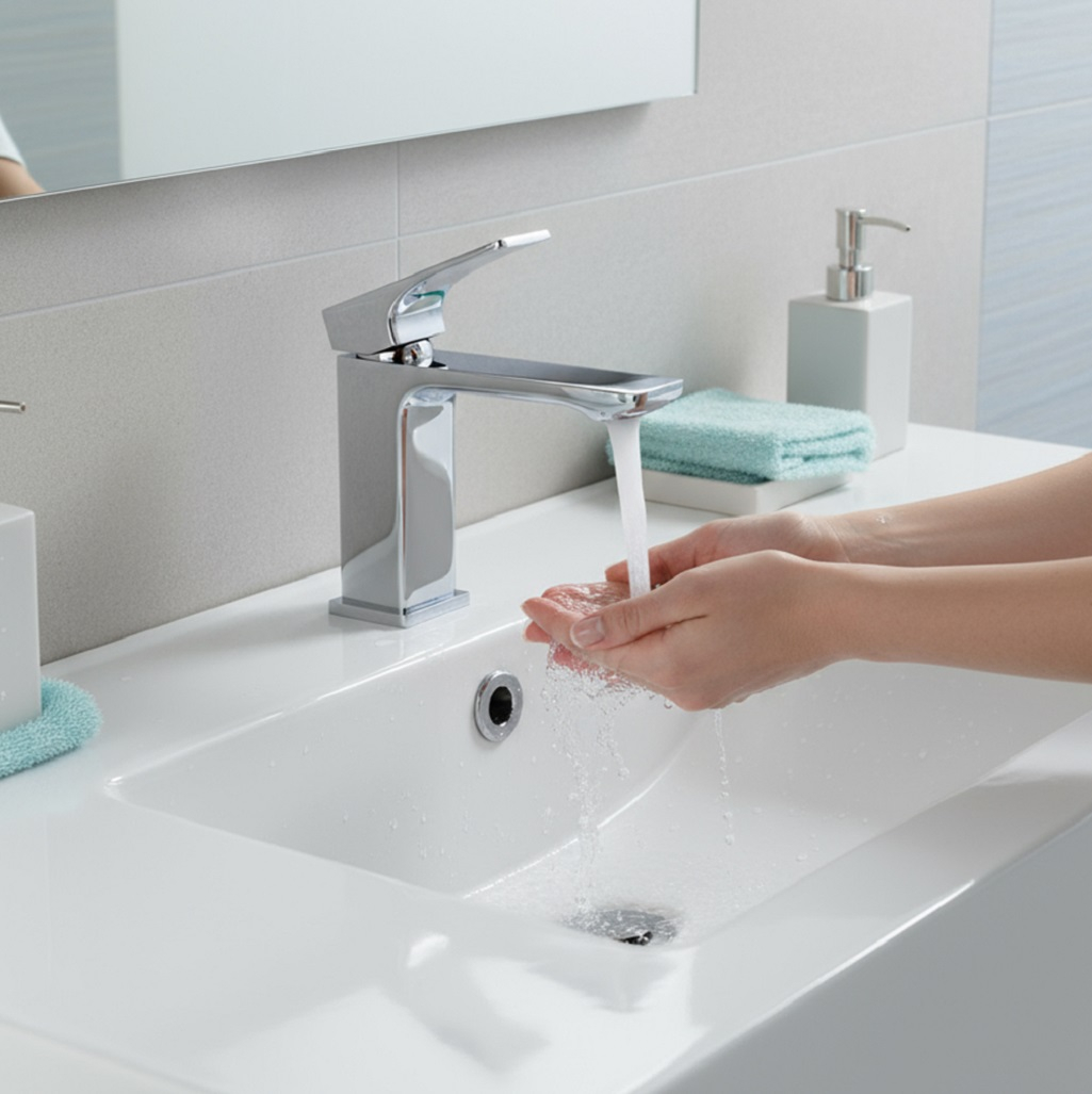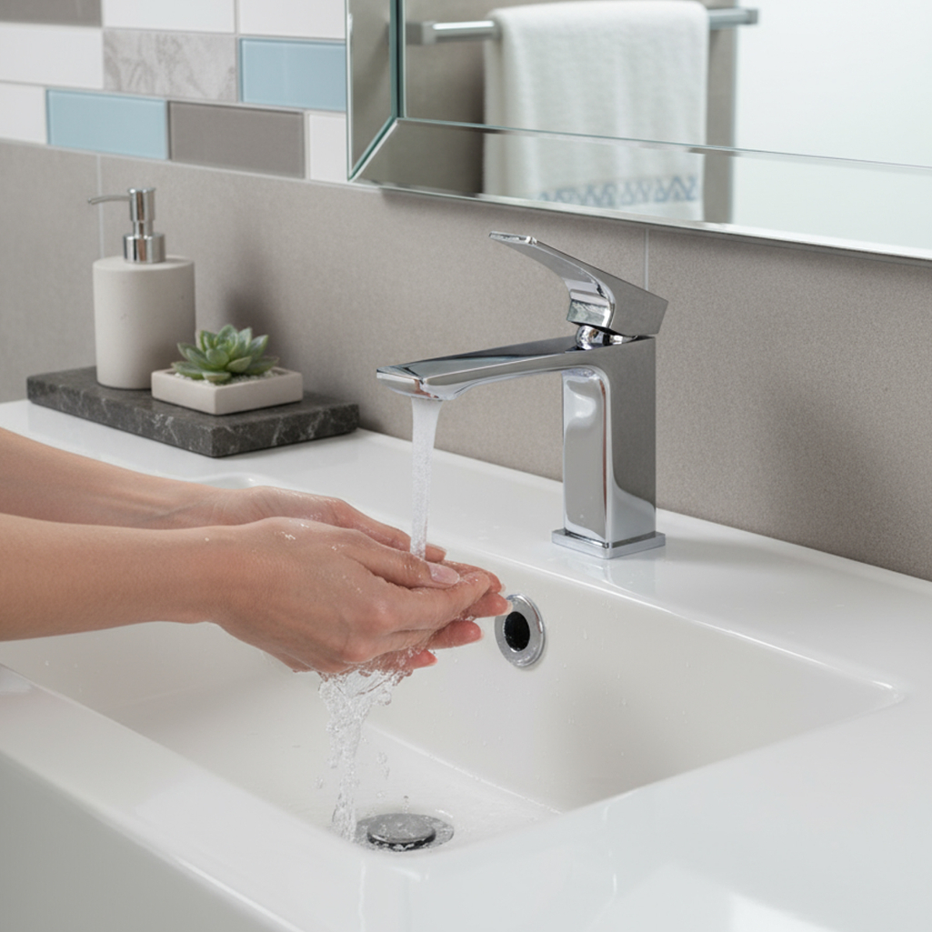 Смеситель для умывальника AETHERPRIDE A1001 глянцевый, цвет хром выполнен в современном геометричном дизайне с четкими линиями. Покрытие сверкающего глянцевого цвета хром не только выглядит дорого и стильно, но и практично в ежедневном использовании. На такой поверхности практически не остаются следы от капель воды и пальцев, что облегчает уход и сохраняет безупречный вид. Одна рукоятка легко управляет и напором, и температурой воды, делая процесс интуитивно понятным. Аэратор насыщает струю воздухом, снижая расход воды без потери комфорта. Смеситель AETHERPRIDE - это воплощение сдержанной элегантности и безупречной функциональности. Его матовая поверхность цвета оружейной стали и лаконичный дизайн станут стильным акцентом в любой ванной комнате, даря не только эстетическое удовольствие, но и безупречную надежность на годы вперед.