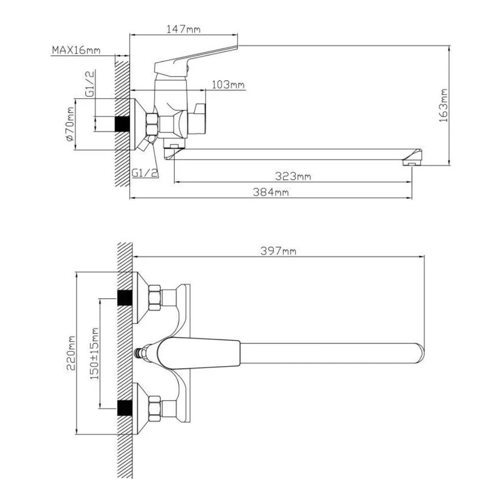 Смеситель для ванны Econoce EC0807BL картридж D35-A, с душевым гарнитуром, однорычажный, цинк, цвет черный предназначен для использования в ванной комнате. Этот стильный и функциональный аксессуар оснащен длинным поворотным L-изливом, который обеспечивает удобство использования. Смеситель выполнен из надежного цинка методом литья в песчаную форму. Полимерное покрытие придает ему элегантный и современный вид, защищает от царапин и коррозии. Для монтажа смесителя используются эксцентрики. Картридж D35-A с запорным механизмом гарантирует долгий срок службы и стабильную работу. Рукоятка позволяет регулировать температуру и напор воды благодаря углу поворота в 25° по вертикали и 50° по горизонтали. Водосберегающий аэратор помогает фильтровать воду и насыщать её кислородом. Шланг выполнен из нержавеющей стали, лейка - из пластика. Душевая лейка имеет 3 режима работы. Специальные эксцентрики упрощают и ускоряют монтаж смесителя на стену. Модель выполнена в брутальном черном цвете, что позволяет грамотно расставить акценты в интерьере ванной комнаты.