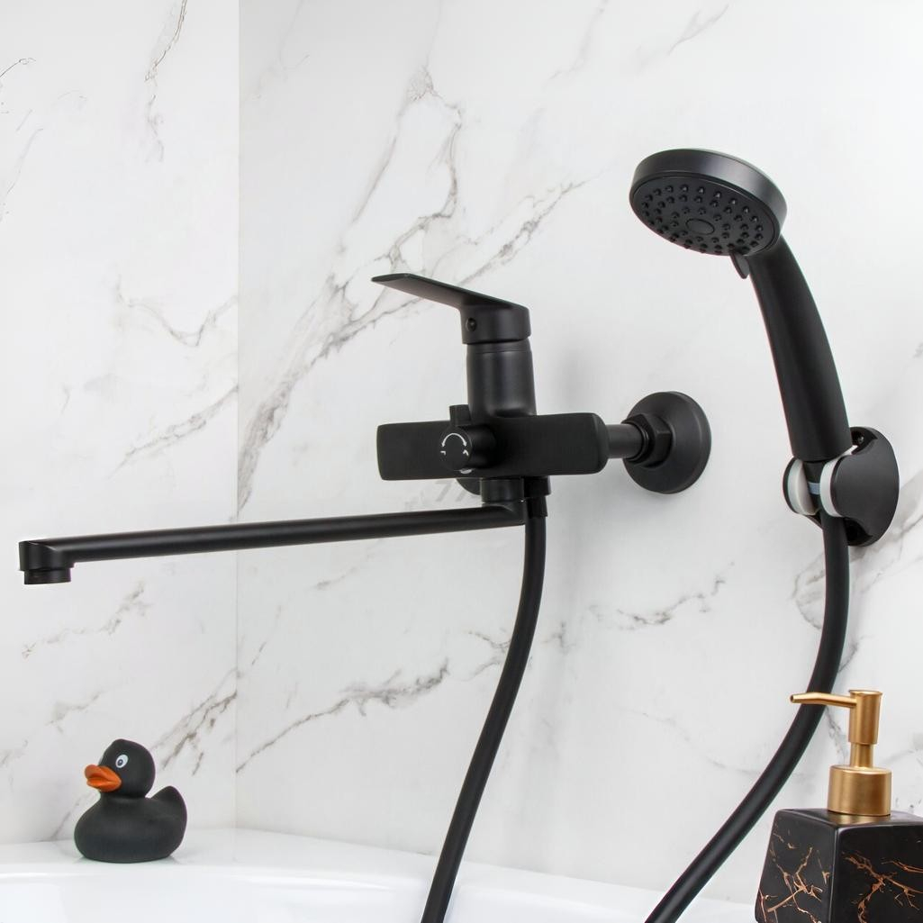 Смеситель для ванны Econoce EC0807BL картридж D35-A, с душевым гарнитуром, однорычажный, цинк, цвет черный