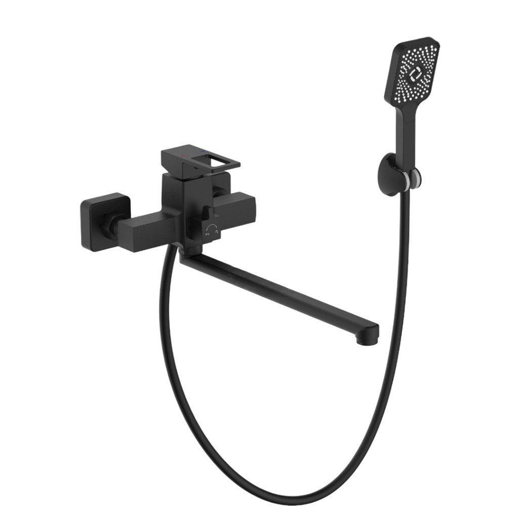 Смеситель для ванны Econoce EC0817BL картридж D35-A, с душевым гарнитуром, однорычажный, цинк, цвет черный